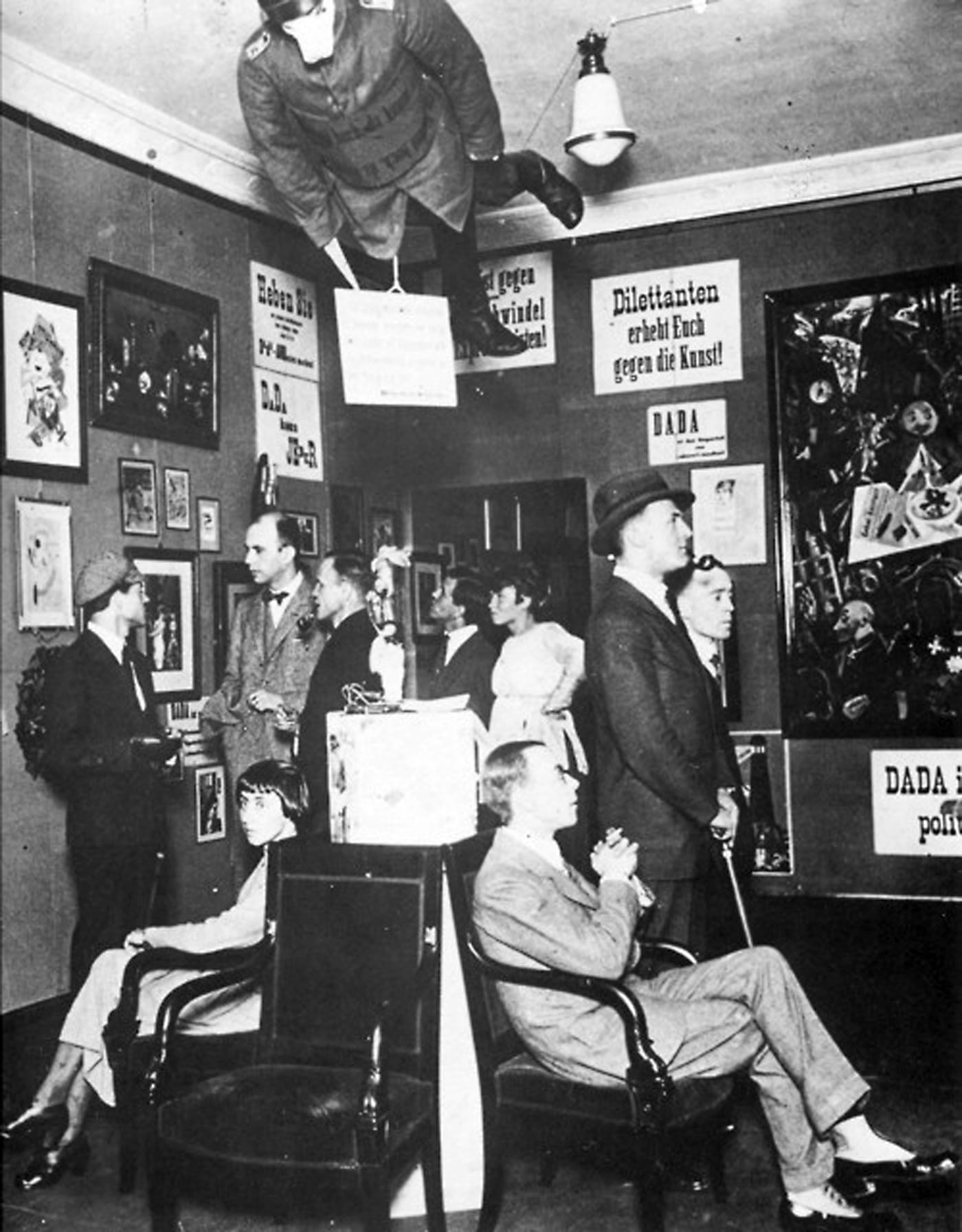 Still, Stavrinaki presents a rather lucid reflection on Dada history and the role of art within it via the Berlin-based Dadaists’ acute historical consciousness and their early modern experience of time. Mostly she explores Dada temporalities through the photographs of the Berlin Dada movement, including the famous one of the First International Dada Fair that was organized by George Grosz, John Heartfield, and Raoul Hausmann. The fair would become the most well-known of all the Berlin Dada’s exploits, featuring almost 200 works by artists including Francis Picabia, Hans Arp, Max Ernst, and Rudolf Schlichter, as well as Grosz, Hausmann, and Hannah Höch. Indeed, one of the best images in the book is Höch’s incredibly dense collage “Cut with the Kitchen Knife through the Beer-Belly of the Weimar Republic” (1919), which is now at the Staatliche Museen in Berlin. In this work, Höch presents the viewer with a rush of intermingled visual fragments that exceeds any attempt at a clear understanding. This form of visual noise and presentational excess offers up the possibility of multiple interpreations that may be in conflict with each other. Thus the interpretative act seems to have no end but always a present. Insofar as the deliberate obtuseness of “the present” is the whole point of the book, I was delighted to have uncovered some germane connective material here applicable to our present, our own now.