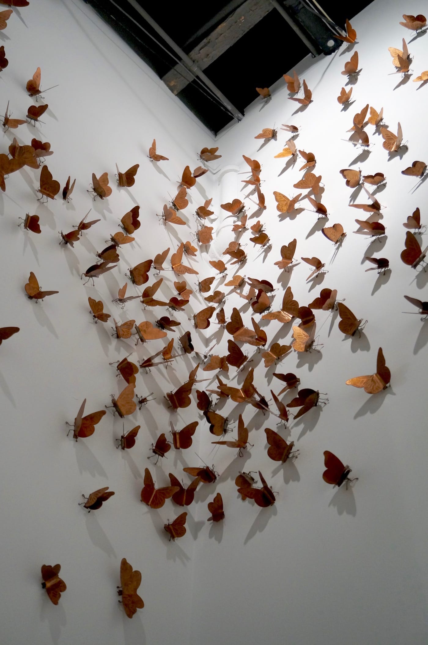 The conceptual focus of the exhibition is the monarch, the only butterfly that migrates in two directions, as birds do. Monarchs (specifically eastern North American ones) travel between Canada or the northern U.S. and Mexico, where they spend the winter. A migration can cover up to 3,000 miles and takes three to four generations of butterflies to complete.
