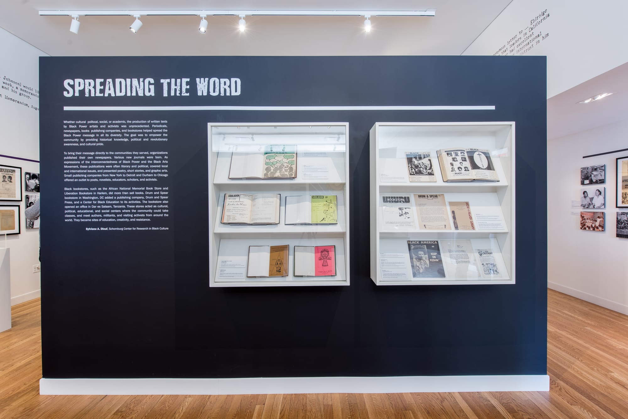 Taking on a subject as expansive as Black Power has its trade-offs. The exhibition at best operates as a sampler, offering the visitor dozens of images and objects that will hopefully inspire further exploration. The didactics have to tread a careful line between giving enough context to support the many narratives and not overwhelming visitors with reading. Curator Dr. Sylviane Diouf, with exhibition manager Isissa Komada-John, responded to this challenge by inviting scholars to write miniature thematic essays to prime viewers for the corresponding thematic sections in the show, such as “Spreading the Word,” “Coalitions,” and “The Look.” The effect is something like a one-hour introductory course on the subject.