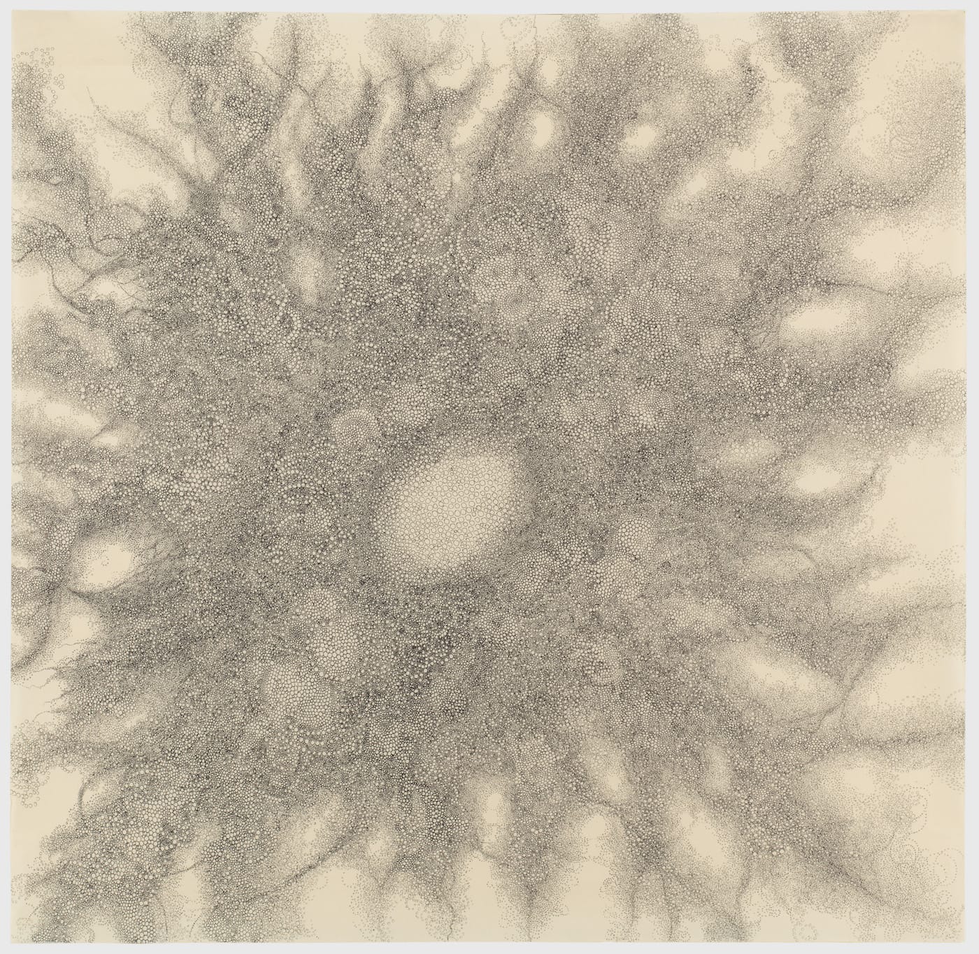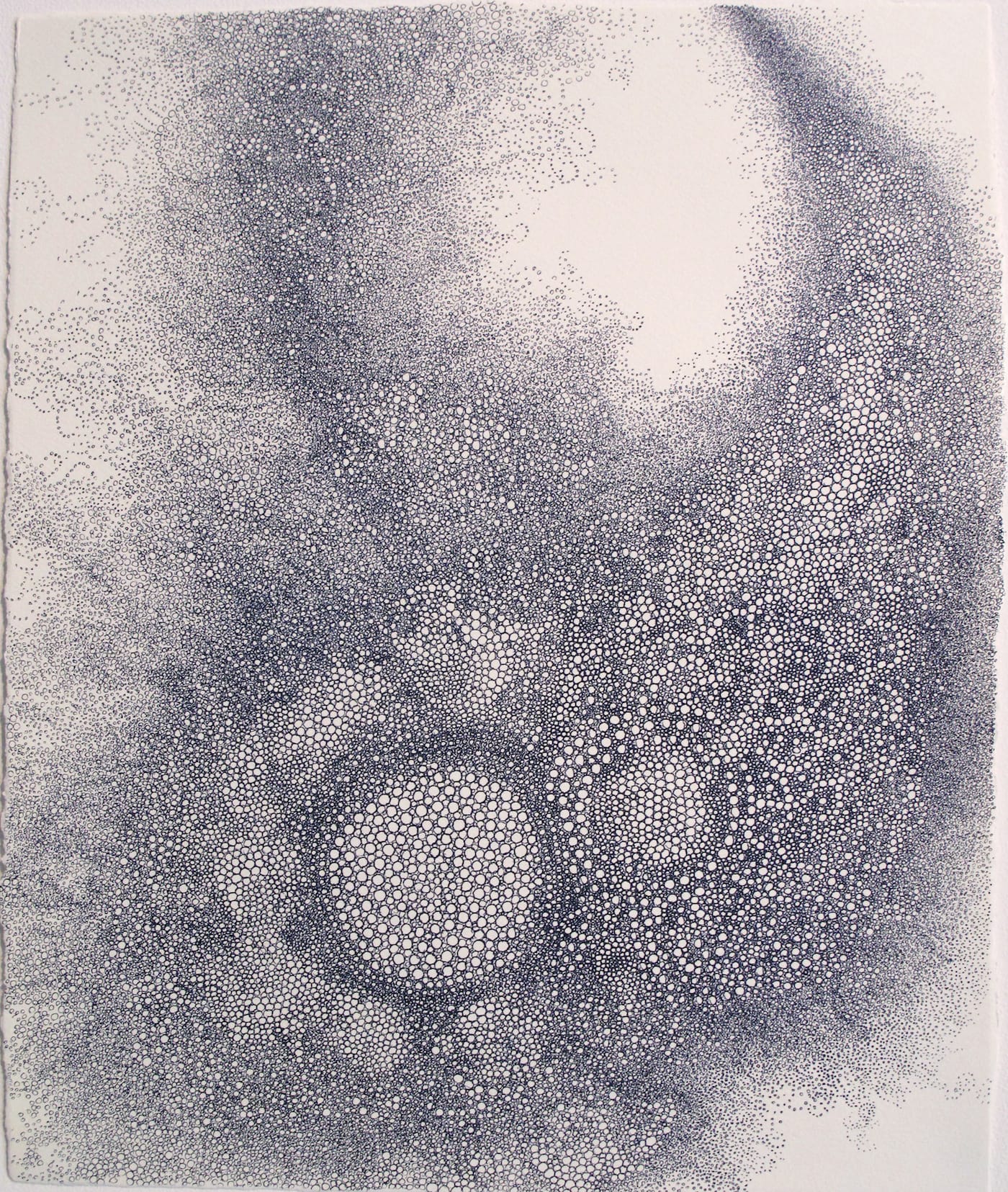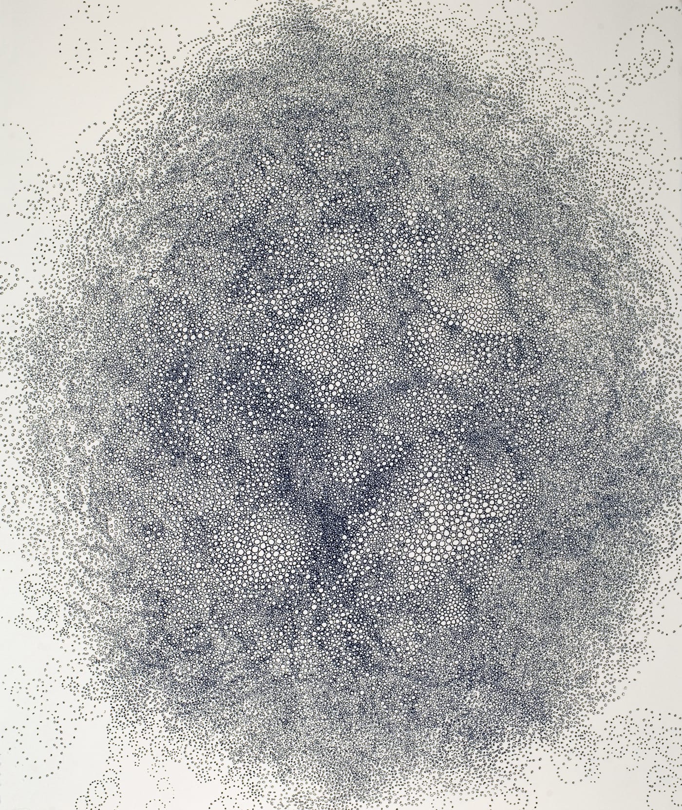 The drawings Doi showed Kind depicted swelling, churning agglomerations of tiny circles resembling celestial constellations or billowing cloud formations. Painstakingly executed, their character was serene and meditative. At first glance, they seemed to share formal affinities with classic East Asian ink-wash painting, but their mode of production was completely different. Kind went on to show Doi’s art at her gallery and the Outsider Art Fair. His works were included in the American Folk Art Museum’s Obsessive Drawing exhibition, which opened in 2005.