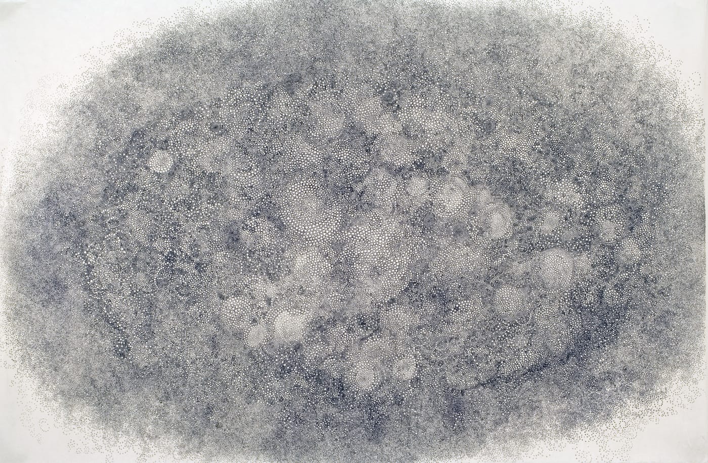 Now, Hiroyuki Doi: Soul, a presentation of Doi’s newest ink-on-paper abstractions at Ricco/Maresca, a gallery in Chelsea, offers an opportunity to catch up with the latest developments in the sprawling clusters of minuscule circles that have become this Japanese artist’s signature creations, and the determination with which he has continued to explore the expressive power of this distinctive formal language. (The exhibition will remain on view through June 24.)