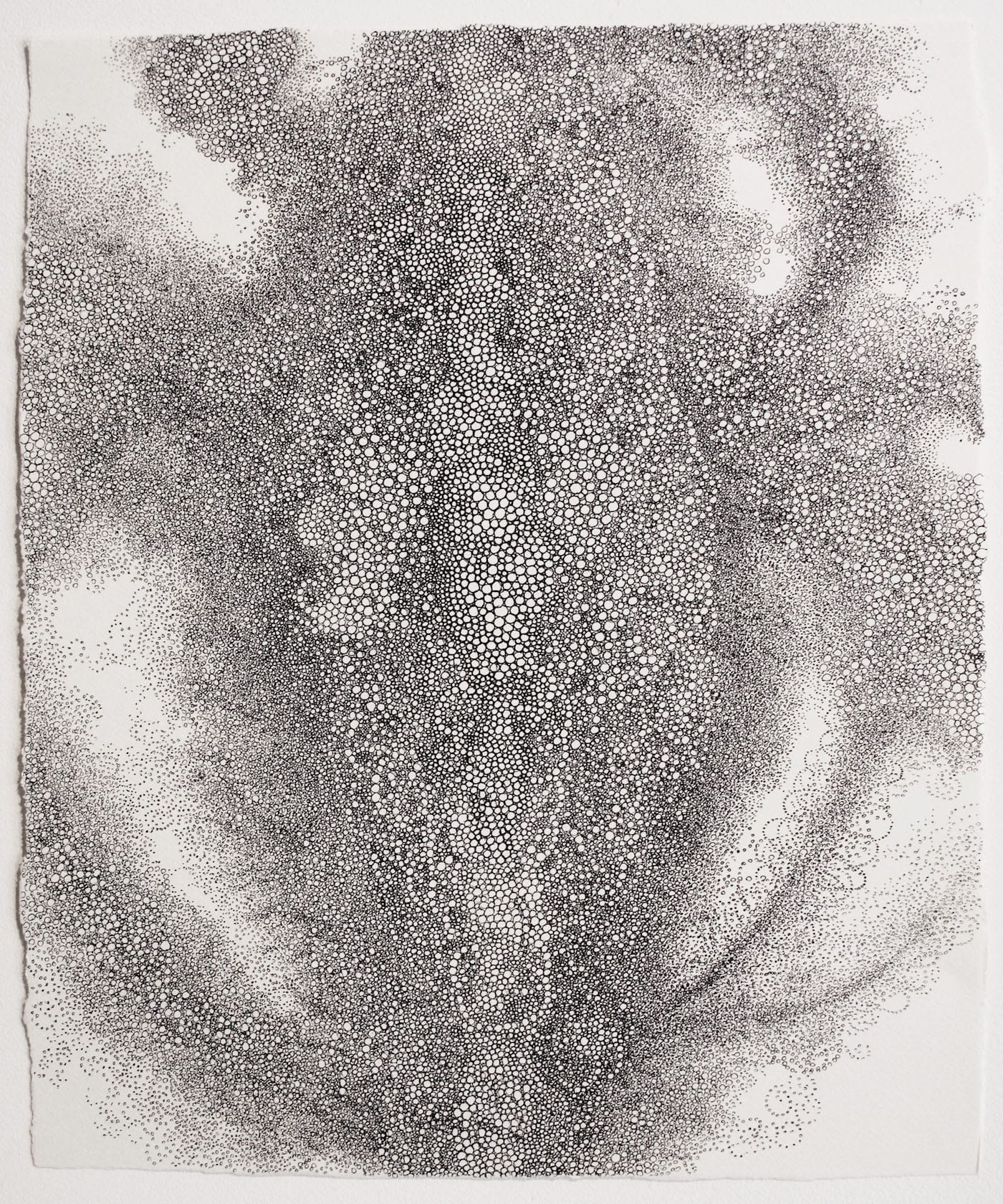 In an e-mail message, Doi noted that he keeps up with current events, and that sometimes a bit of news inspires him to begin a new drawing. He indicated that his circle-making technique has evolved: his tiny circles have become even smaller, and his circle-derived forms have become more three-dimensional in appearance. Doi continued, thoughtfully, expressing the humanist spirit that pulses through his art, “Nowadays, people depend on technology too much. I know it’s important, but sometimes people rely on machines and do not believe in people.”