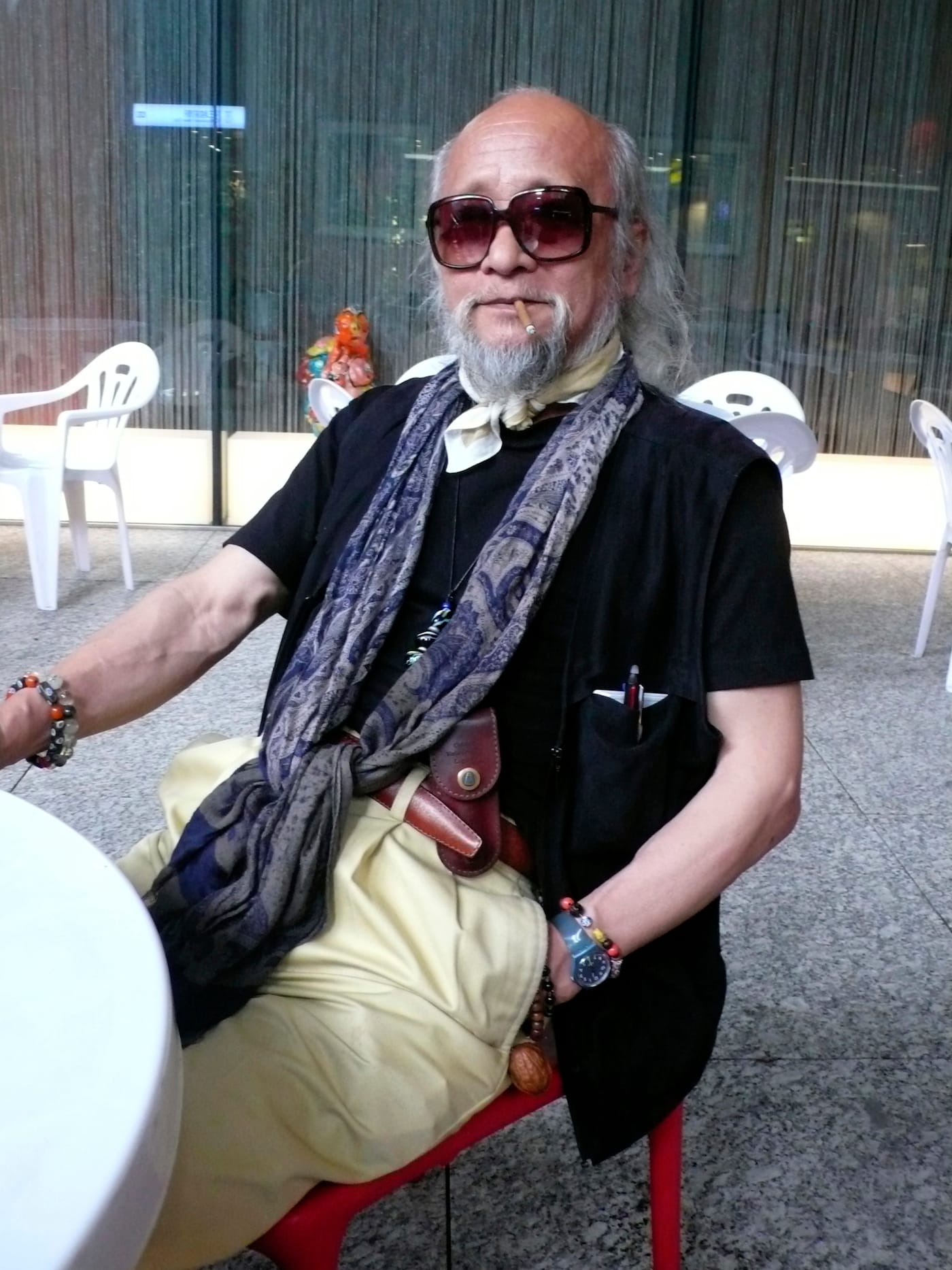 The Japanese artist Hiroyuki Doi at a café in Tokyo, summer 2014 (photo by the author for Hyperallergic)
