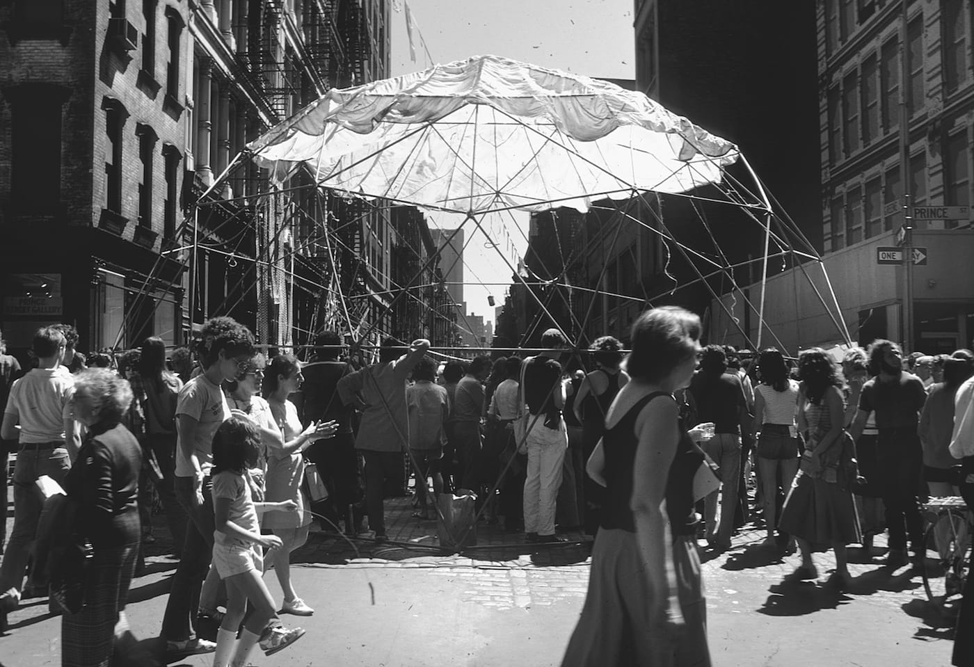 In response to such uncertainty and cross-purposes, artists formed community advocacy groups and cooperative galleries. Groups and venues such as the Soho Artists Association, Fluxhouse, Mercer 55, A.I.R., and the Kitchen fought off threats to their community, including an idiotic plan to rename West Broadway “Jackson Pollock Place.”