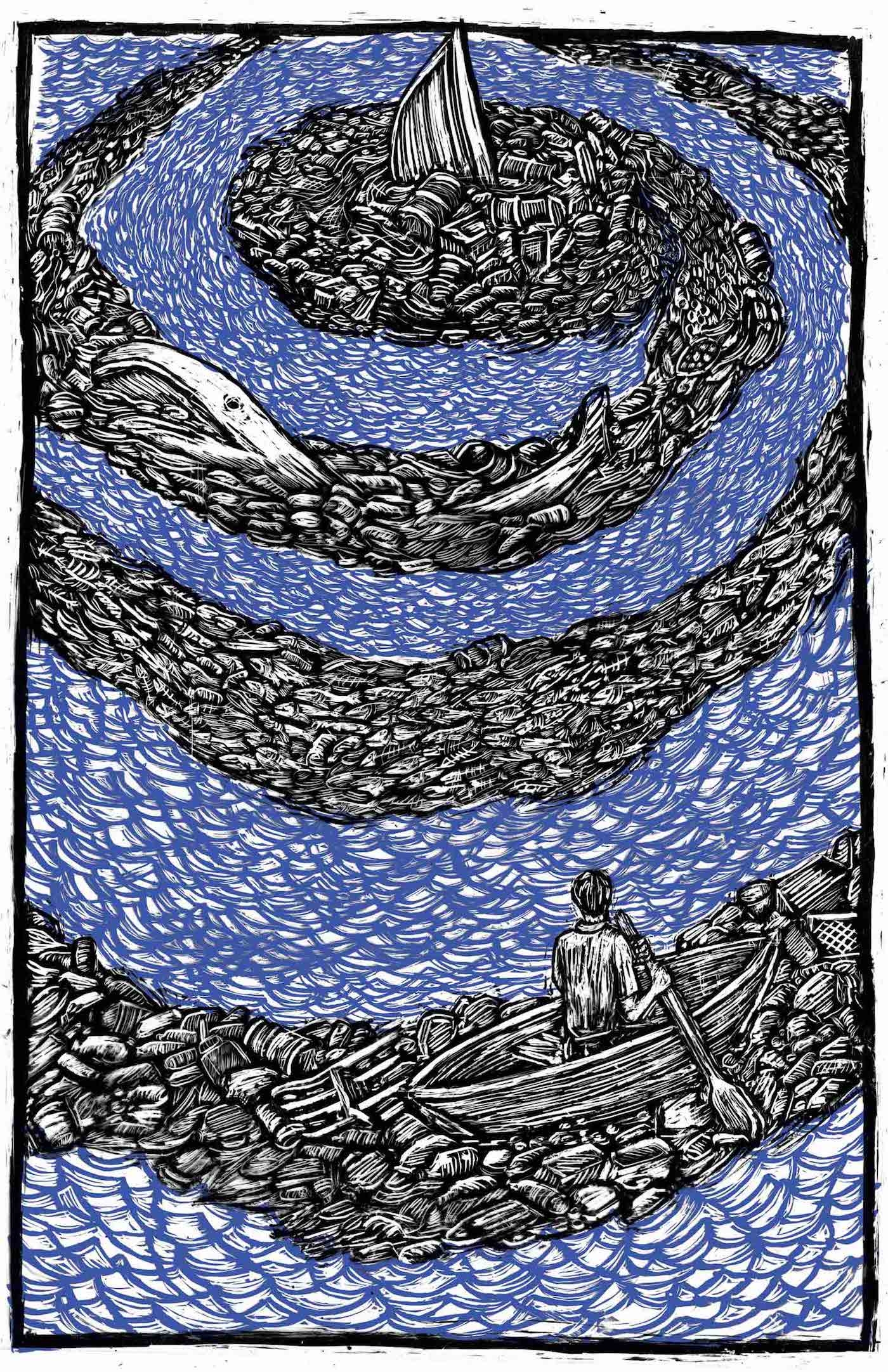 Justseeds’ prints can be purchased through the collective’s website, with the proceeds from the $15-$25 pieces going to support the politically engaged cooperative. The accessibility of the prints in Commonwealth, on both a commercial and a semiotic level, contrasts with the more cerebral and contemplative work in DNA of Water. While the former show represents a call to action, the latter is a call to mourn. With the United States experiencing as much political turbulence as it has in a generation or two, demotic goads to direct action, rather than high-art reflection, may seem more urgent and timely. But both approaches are needed as much as ever. Reflection hones action’s dumb blade and action firms up reflection’s gossamer insights. Together, they help clarify and address the sociopolitical issues that are as ubiquitous and complex as water.