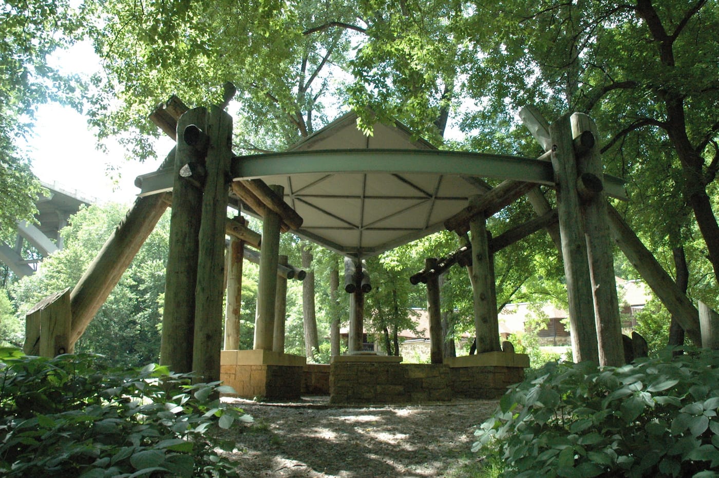 In recent history, efforts have been made to tell a more balanced story, one that shares the Dakota perspective. In 1987, the Dakota community erected a monument in Fort Snelling Park in memory of the concentration camp that was once there. The wooden structure is made up of large logs of wood that fan out towards the sky from a circular enclosure. The top of the structure reads “Wokiksuye K’a Woyuonihan,” which means “remembering and honoring.” In the center is a circular plaque made of pipestone, placed there by Dakota elder Amos Owen of the Prairie Island Indian Community, which lists all of the bands that were interned at the site.