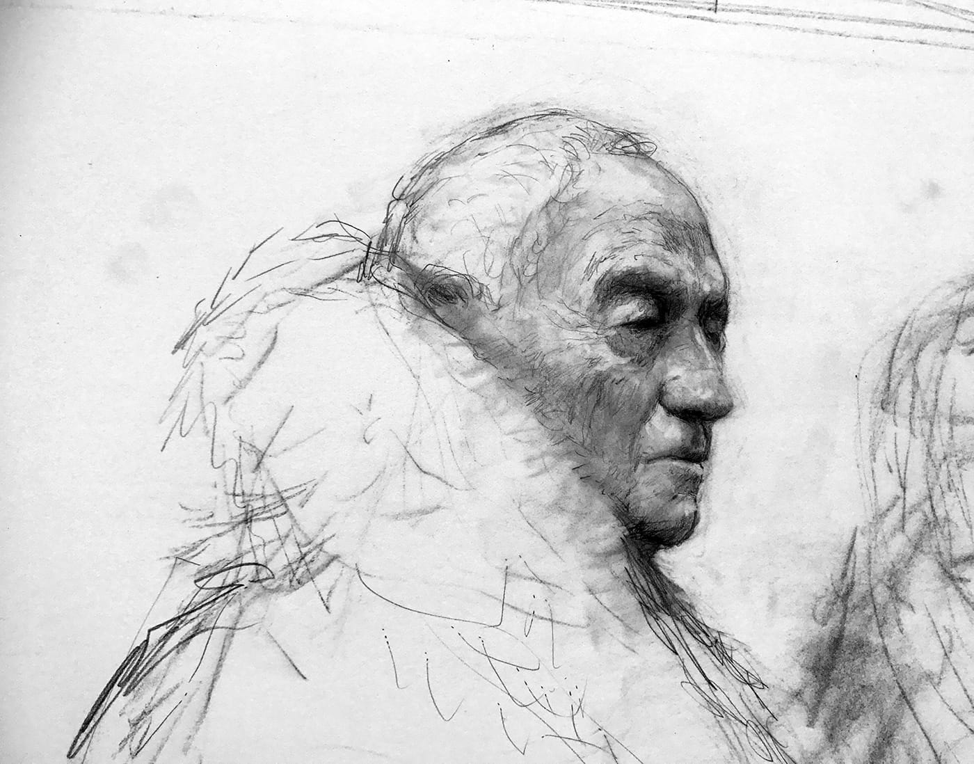 Andrew Wyeth had a vast knowledge of art, all art, ancient, classical, traditional, realism, abstract, modern. He enjoyed learning of new younger artists that he wasn’t familiar with, and he introduced me to artists with whom I was unfamiliar. We loved these exchanges. We drew one another. I asked him once how he stayed motivated over his long career, and in natural Wyeth obtuse fashion, he answered, “I’ll be going along and I’ll see a piece of barbed-wire with a piece of horses mane stuck on it, and it’ll just get me going.”