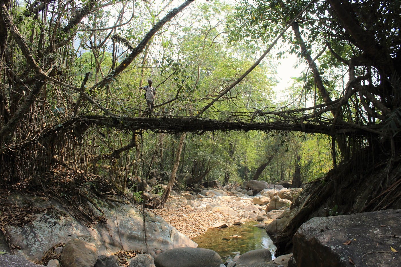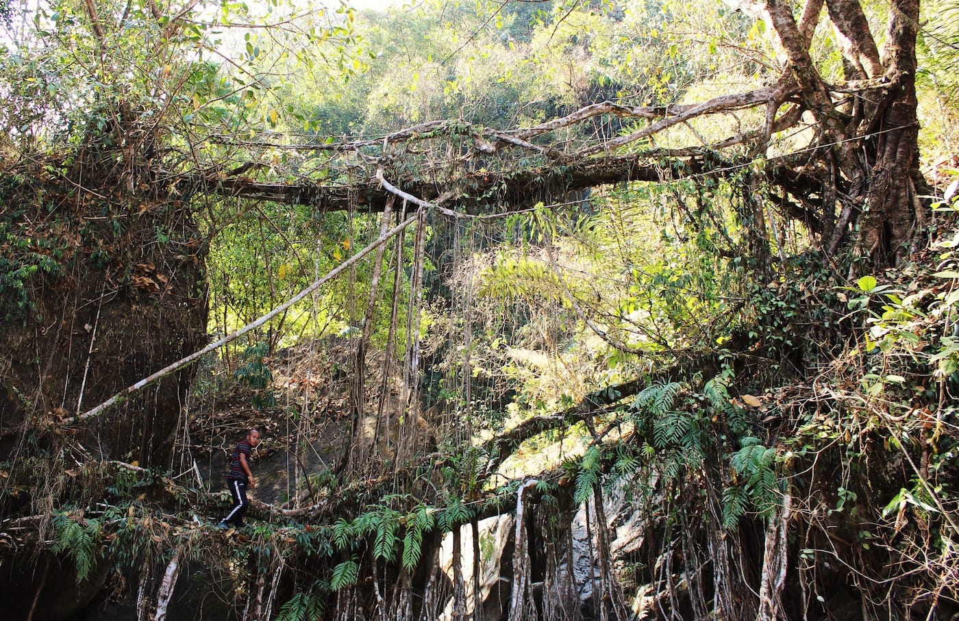Among these are the Nongriat double-decker suspension bridge, a 250-year-old living root bridge that features one pathway over another. It’s the most famous of its kind, representing a major tourist attraction in the region that fuels a large part of its village’s economy. While Rogers laments that many living root bridges are “simply beyond saving” because of their degradation, the practice of nurturing this botanical architecture may be resuscitated with the help tourism industry. He’s noticed widespread growing of new root bridges at areas popular with tourists, as locals have incentive to maintain the existing architecture and even begin cultivating new bridges.