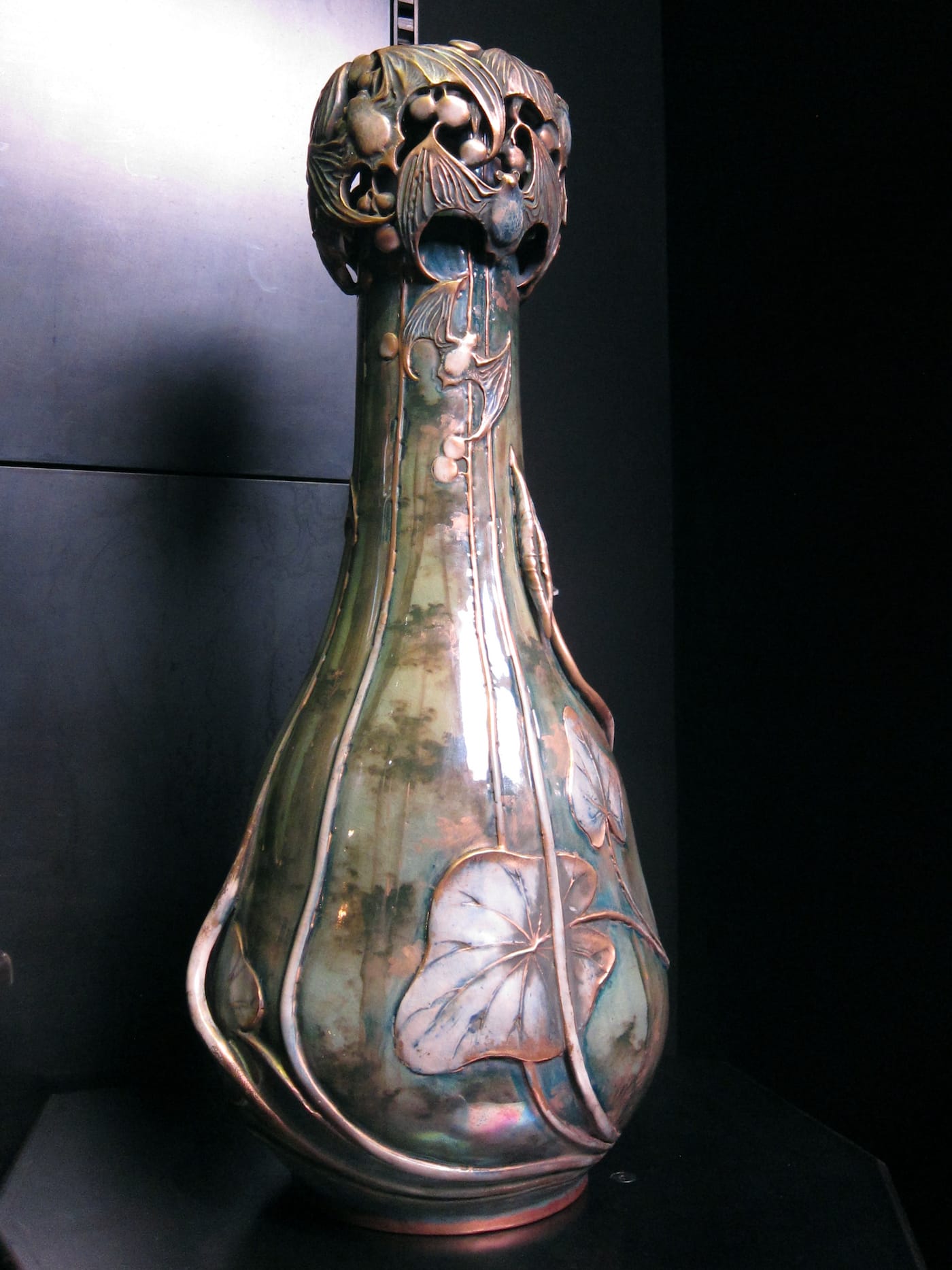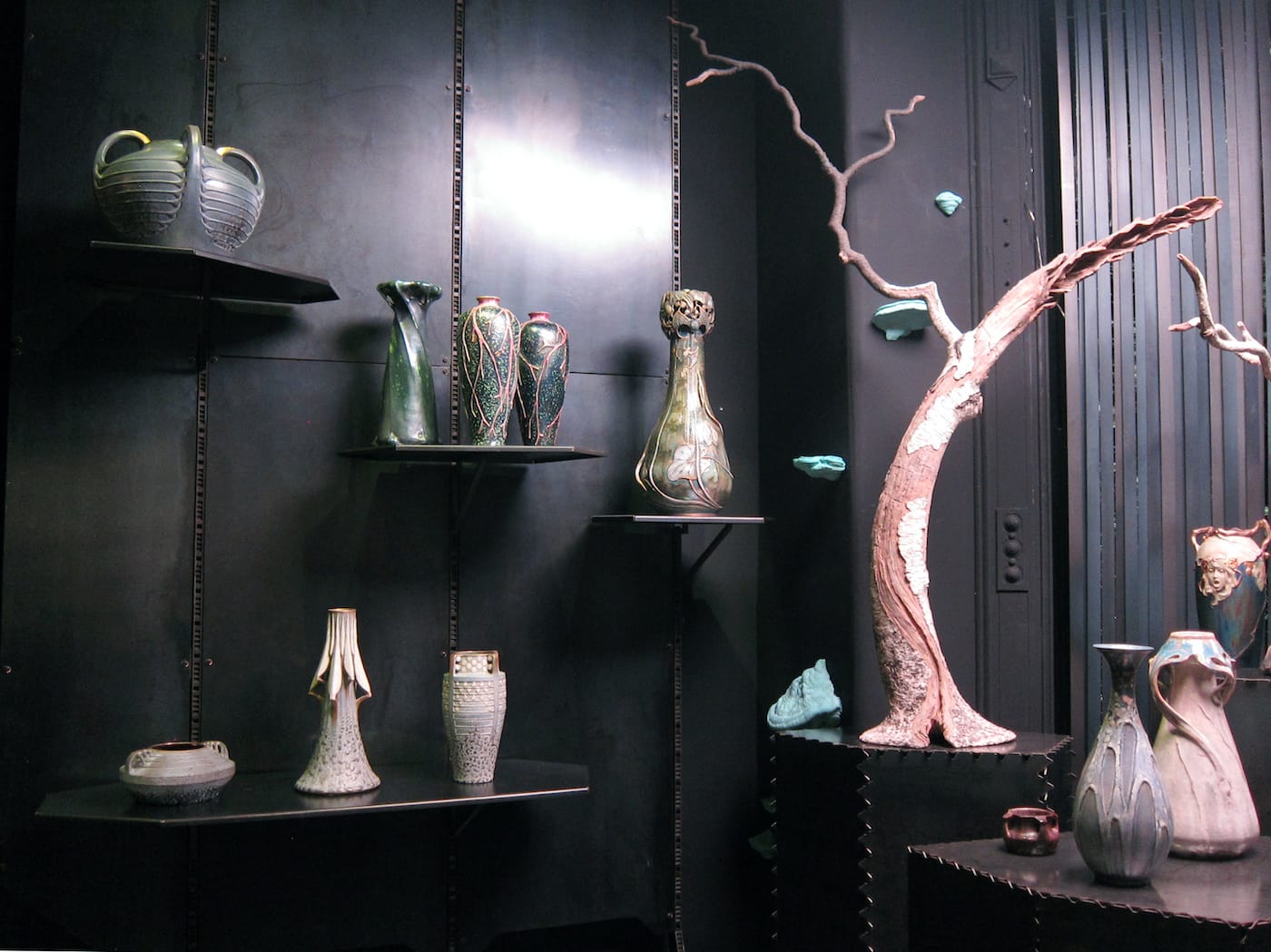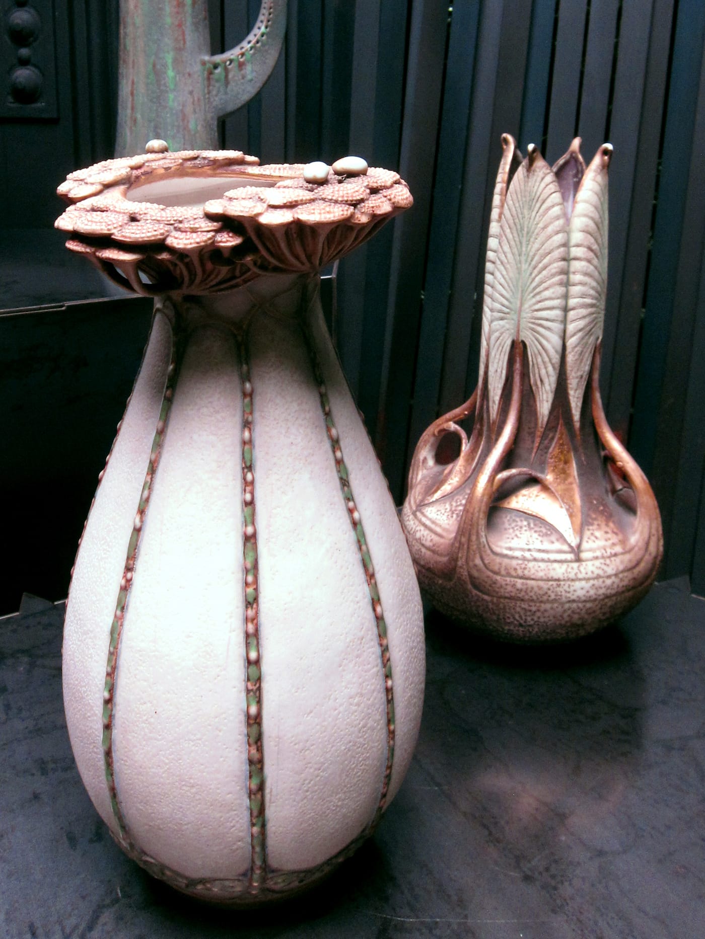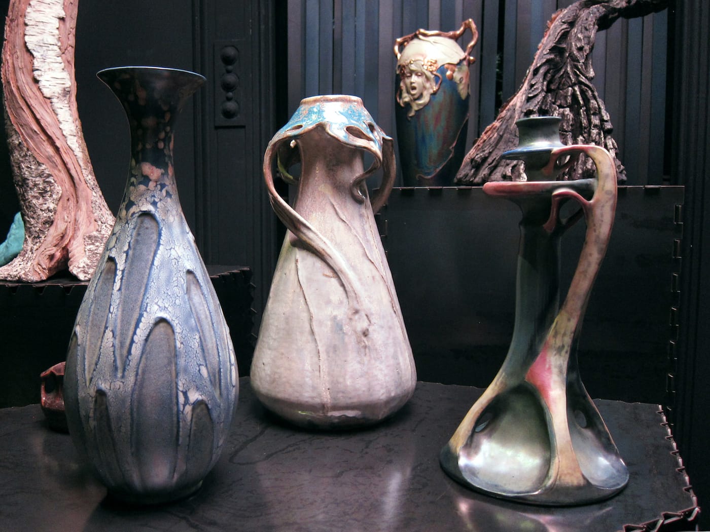 A colony of bats, a troop of mushrooms, and a cluster of angular grasshopper legs — these are among the charming carvings of flora and fauna that typically adorn ceramics produced by Amphora, an Austrian pottery workshop founded in 1892. Located in the Turn-Teplitz region in what’s now the Czech Republic, Amphora was renowned for its exquisite, richly decorated vessels. Many of its artists created designs that echoed the highly ornamental paintings of their contemporaries, including Gustav Klimt and Alphonse Mucha; they often featured portraits of young women with flowing hair and flower crowns, similar to those that the Art Nouveau painters loved to depict.