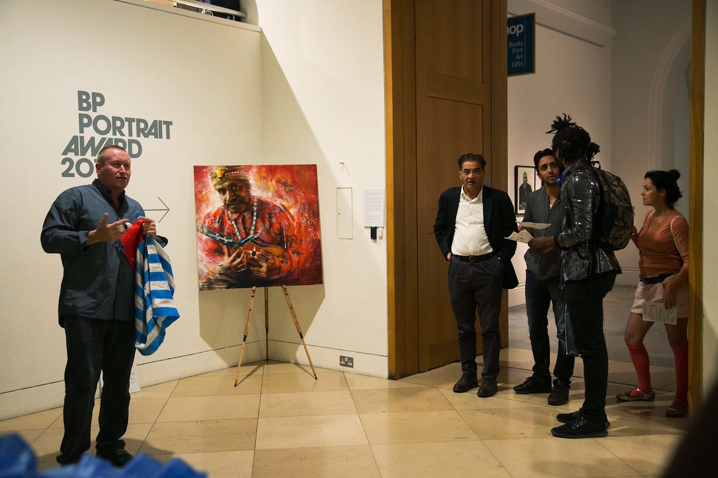 Dale Grimshaw, the painter of the portrait, had submitted his painting of Benny Wenda to the competition as a form of protest, but it was not selected. He explained his decision to protest the exhibition in an impromptu talk to gallery-goers. He said: “[BP] know very well what’s going on in the land, they engage politically and financially speaking with the Indonesian military … could you imagine, on a weekly basis, people you know being imprisoned and tortured for peaceful protest?”