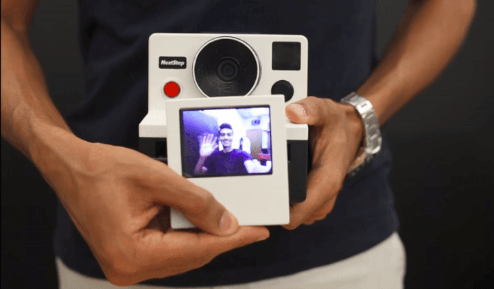 Named to reference the classic Polaroid OneStep, the Instagif NextStep runs on two Raspberry Pi computers — one built into the cartridge and another into the camera body — that communicate with each other via an ad-hoc WiFi network they form upon bootup. After you record a GIF by pressing a “shutter button,” the faster device compresses and converts the file for download by the one in the cartridge. The camera then pops out the cartridge for your viewing pleasure. As an extra nice touch, Singh has programmed the digital images to slowly materialize just like a polaroid develops when ejected, by first playing a copy of the original GIF with a fade-in from black, before playing a regular version on loop.