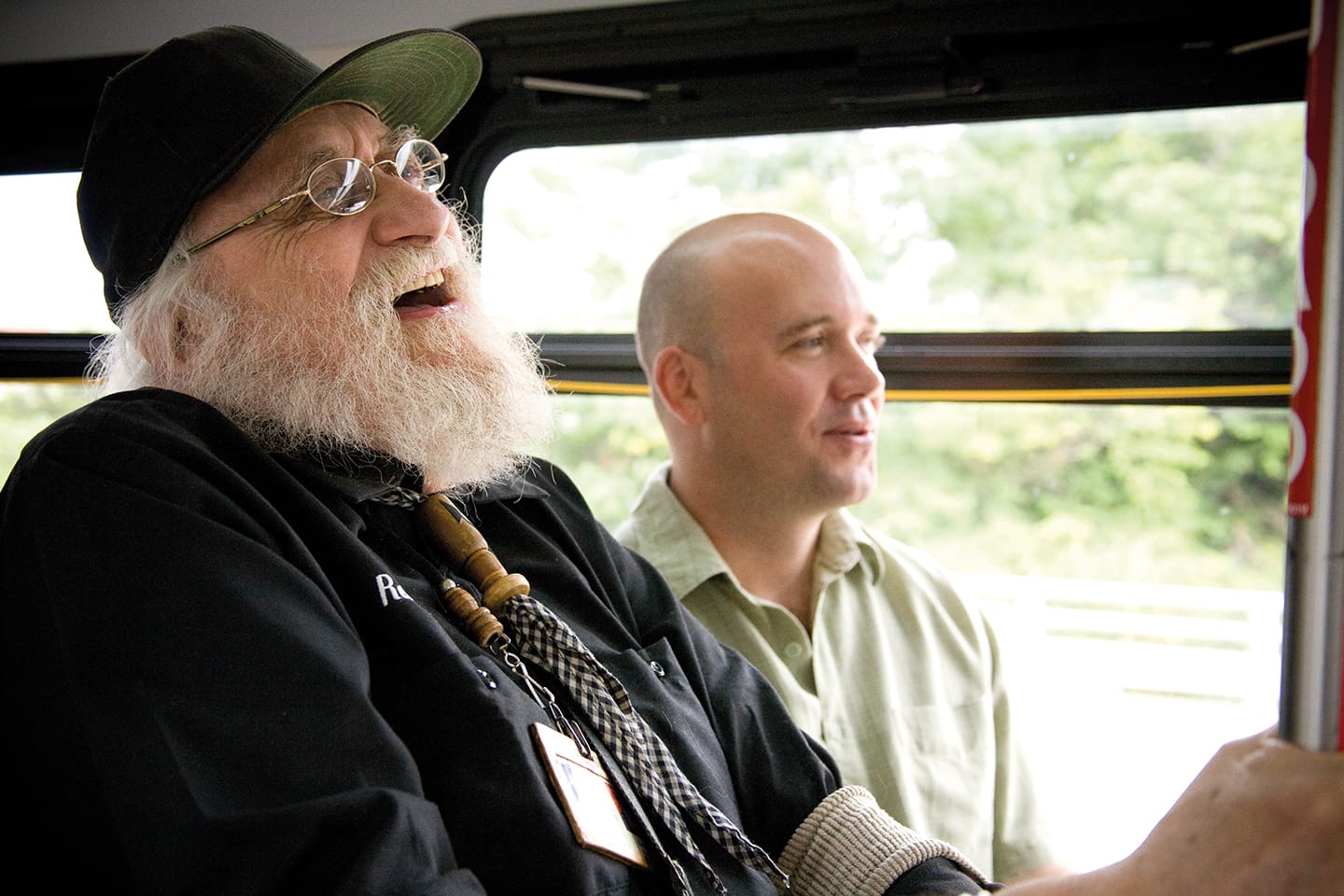 Ingram first spotted Kuhler during a ride on a public bus in Raleigh in 1994. The elderly artist was more than six feet tall, he writes in the book, “with a bushy white beard and ponytail.” He wore “a custom-tailored uniform of indeterminate origin: a sleeveless, Kelly green suit jacket with wide, black, notched lapels, epaulets, and brass buttons, a matching suit vest, yellow flannel dress shirt, a fleur-de-lis Boy Scout neckerchief, and tight-fitting, knee-length shorts.” Although other passengers looked away, Ingram watched and listened as Kuhler declaimed about the virtues of public transportation. He writes that he at first found the old man to be “[j]ust another crazy person talking to himself,” but that the more he paid attention to his rant, the more he “noticed the good sense he made.”
