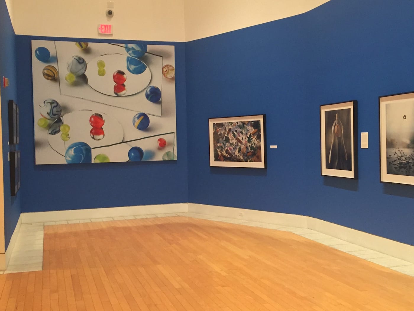 Walter Wick: Games, Gizmos, and Toys in the Attic, on view at the Lowe Art Museum (operated by the University of Miami), is a traveling retrospective of Wick’s career as a photographer, illustrator, and children’s book author. The show takes viewers from his early work as a student at the Paier College of Art and a puzzle-maker for Games Magazine, to his photos for I Spy and other books, including A Drop of Water: A Book of Science and Wonder and the Can You See What I See? series. Painted in ketchup and mustard colors, the exhibit also doubles as an educational space for kids, with placards directing young viewers to compare particular images or count the number of, say, real marbles in a mirrored maze of toys.