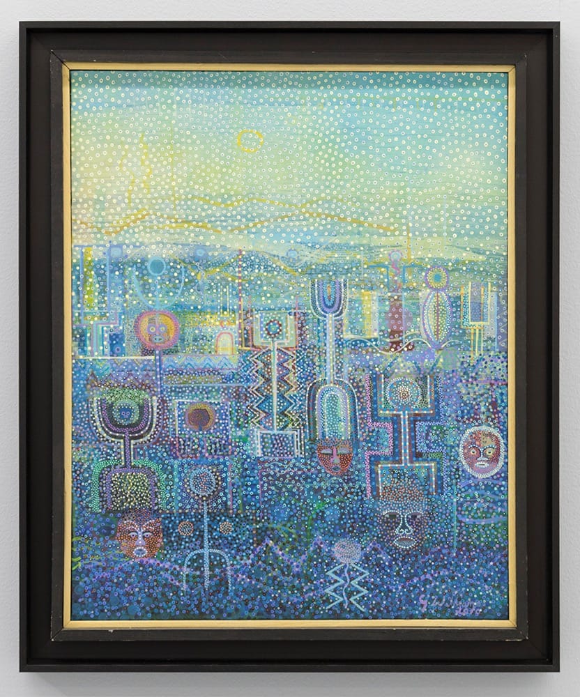 All around me on the walls, the shelves, resting on the floor, are hundreds of artworks. Their dates of creation span from the mid-1960s to this morning. Their aesthetic approach ranges from graphic figuration to pure abstraction. Watercolors, collages, impasto oil paintings, flat acrylic works, sculptural reliefs, multi-dimensional kinetic works. It is all William’s life’s work. I am here to be witness to it and to record his oral history, for inclusion in the Smithsonian Archives of American Art.