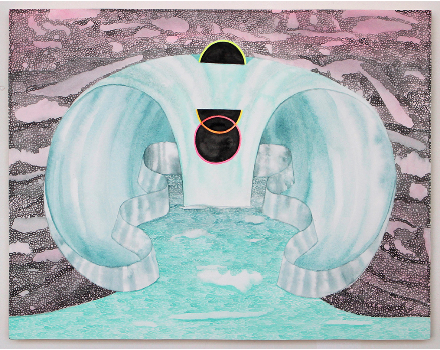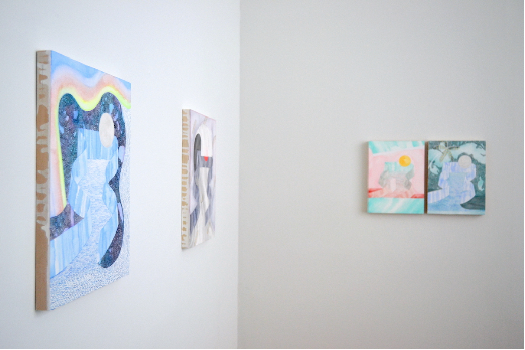 In the back room, Jessica Cannon’s Rapid Cycle displays a suite of dreamy landscapes that resonate with Wetzel’s surrealist aesthetic. Collectively, her smallish acrylic paintings feel like repeated attempts at capturing a dream as it slowly fades. In this way, both artists long for the cohesion of forms and meanings. Although many artists make work about their process, it can seem hard to follow. It helps viewers to understand the process better when it’s more focused in a direction, as Cannon has done in her show.
