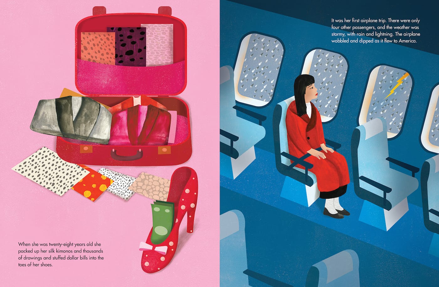 As the book continues, seriality appears in the form of raindrops, cars in New York City, and finally, seven eye-candy reproductions of original Kusama works, including the textured chair of stuffed appendages Accumulation No. 1 (1962) and an Infinity Room. In addition to its unique mod coolness, there is a spirituality to Kusama’s work that explains its enduring popularity. Suzuki gets it: “She was devoted to her dots — for her they were a way of thinking about the world among the stars, as one dot among millions of others. They were a way of thinking about infinity.” Suzuki told Hyperallergic: “Working on the Kusama book really made me think deeply about … how to tell a story for viewers (and readers) of all different ages and backgrounds. And that was definitely a challenge.”