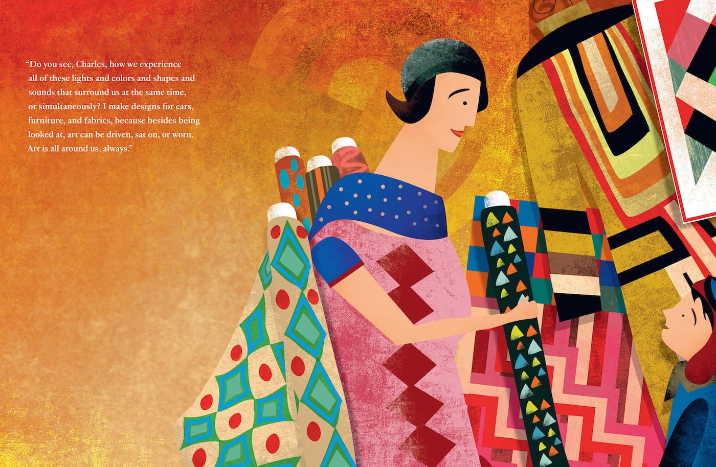 Another MoMA children’s publication, Sonia Delaunay: A Life of Color, written by MoMA Curator Cara Manes, with illustrations by Fatinha Ramos, explains the principles of Orphism in a way that’s accessible to children and takes an artist whose work is often overshadowed by that of her husband and moves it to the forefront of a notable abstract movement. I appreciate both on behalf of the youngsters, but the fantastical story of an artist mother using a flying car to jet around Europe to explain how colors can represent movement and sound reminded me that abstraction can be pure pleasure.