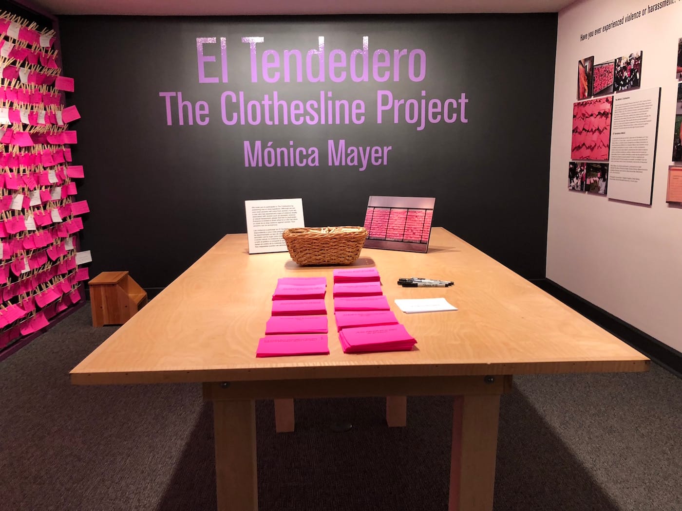 Artist Mónica Mayer's multifaceted El Tendedero/The Clothesline Project uses a symbol of domesticity to generate dialogue and support taking ownership of feminist issues and experiences.