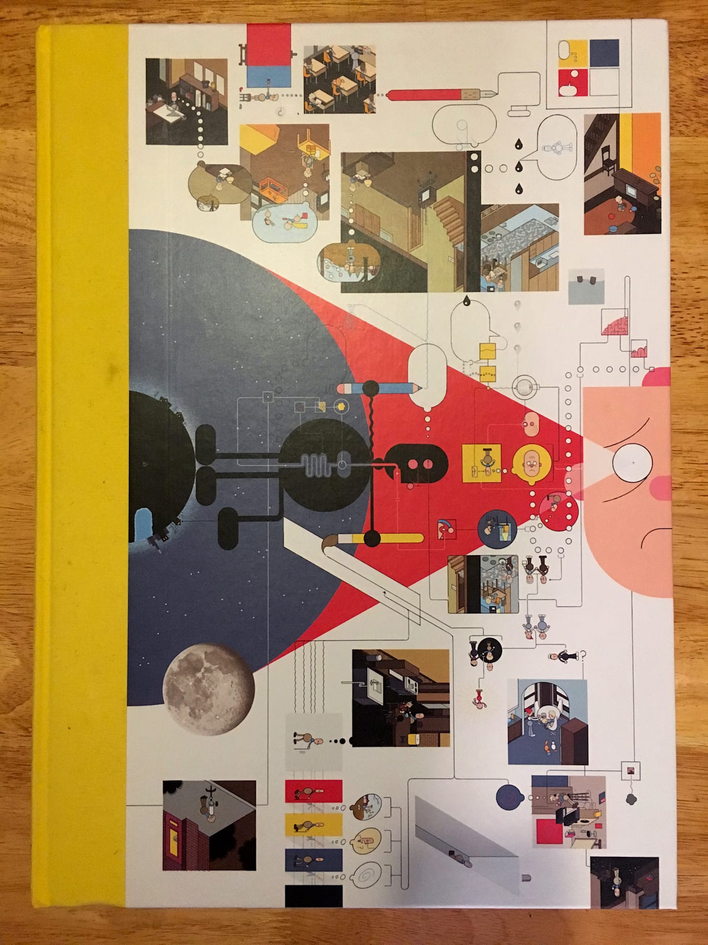 Graphic novelist Chris Ware is known for his dense, satirical, and self-deprecating stories. Often unconventionally designed, his books require close physical proximity to make out his miniature figures and text, twisting the book around to read the panels; some even take the form of boxes full of other books, as with Building Stories. His latest book, Monograph, measures 18 by 13 inches and weighs over seven pounds. The size is nostalgic of large-format newsprint comics. But unlike those fragile pages, this book is sturdy, hardcover-bound, and meant to last.