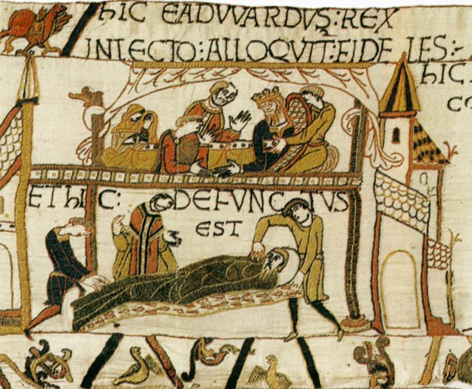 Detail of the Bayeux Tapestry showing the deathbed of King Edward