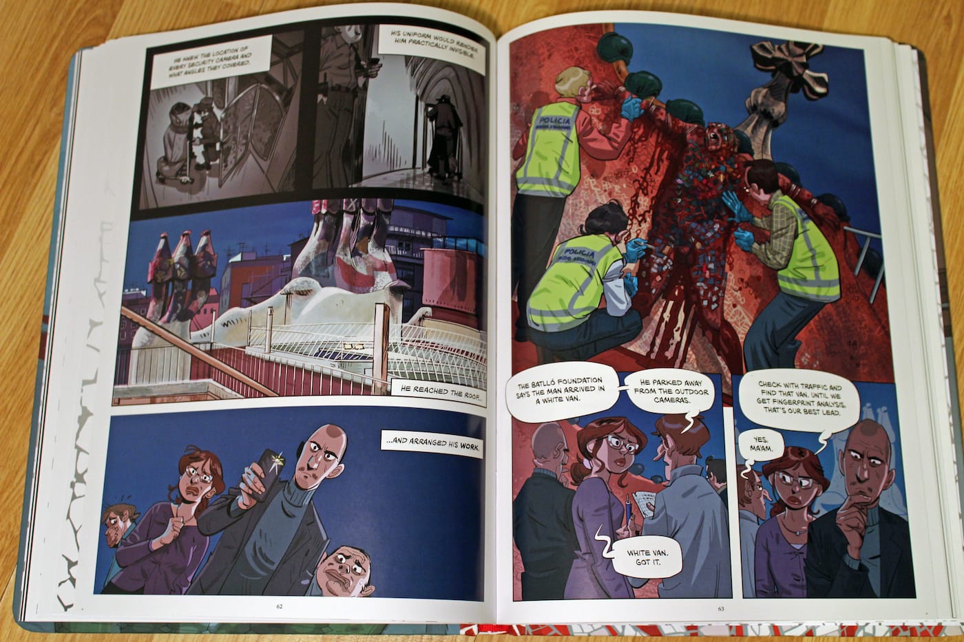 The architectural creations of Antoni Gaudí, with their distinctive mix of Moorish, Catalan, Baroque, and Gothic influences, are icons of Barcelona. There isn’t an obvious connection between Gaudí’s works and multiple homicides. But The Ghost of Gaudí, a graphic novel published in the U.S. in October, concocts a tale out of the two.