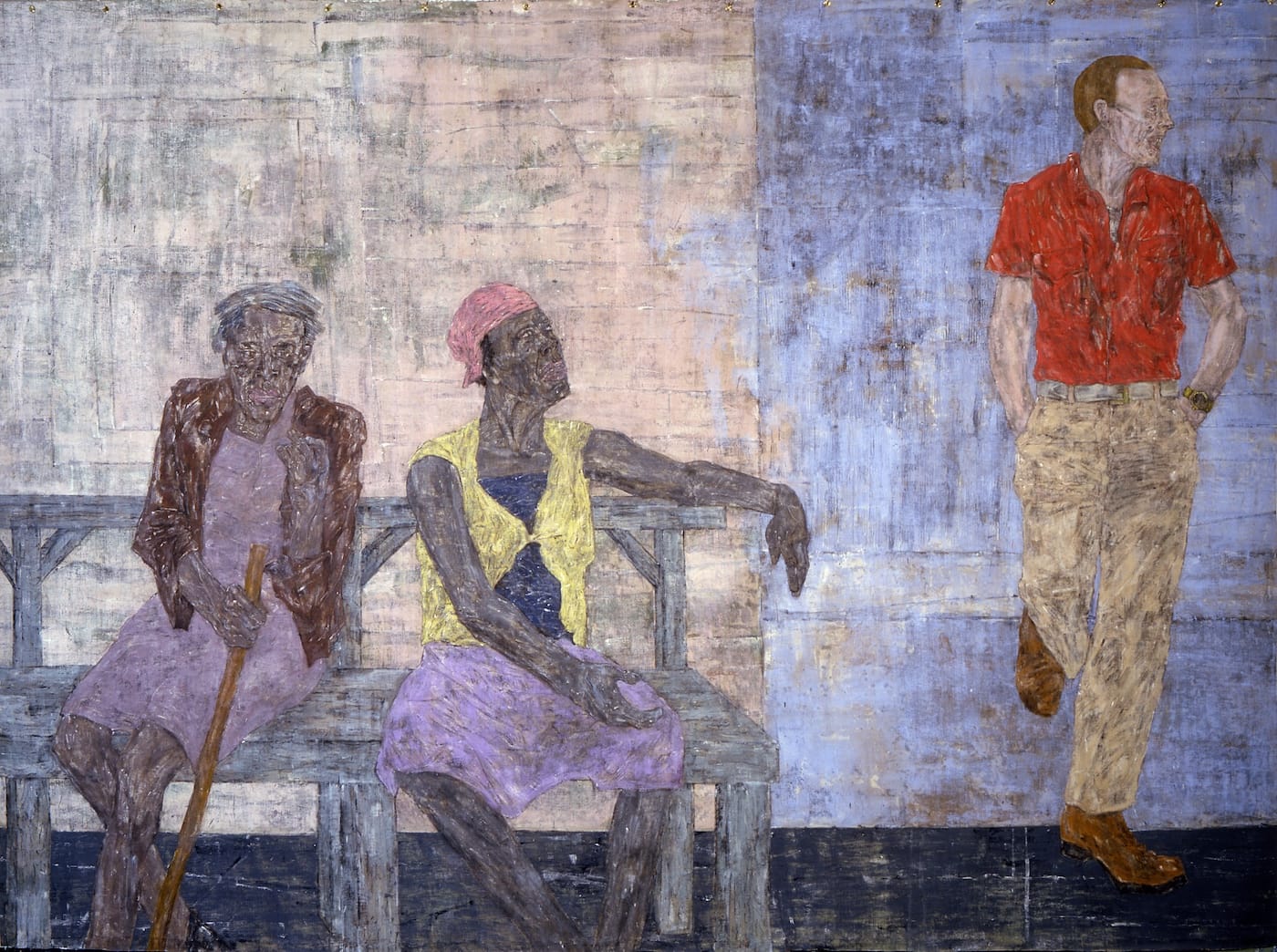 Still, the inclusion of only three major paintings from the 1980s (“White Squad VIII” and “Two Black Women and a White Man,” along with “Horsing Around IV,” 1983, a portrayal of a mercenary in his leisure time grabbing the breast of a seated woman) — and only one, “White Squad VIII,” depicting a scene of violence — means that a significant stage of the artist’s work has been skipped over.