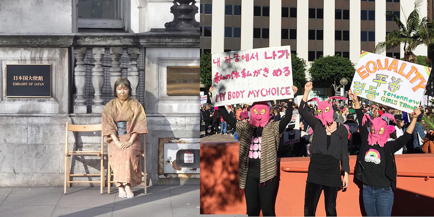 Between 1932 and 1945, thousands of women — hundreds of thousands by some estimates — from Korea, China, and the Philippines were pressed into sexual slavery to serve Japan’s Imperial Army. Although a formal agreement between Japan and South Korea was recently reached, the legacy of these “comfort women,” as they are known, continues to be a source of trauma, shame, and anger throughout the region. In recognition of their plight, statues dedicated to the victims have been erected in cities throughout the world, from Asia to Europe and the US, including one that sits in Glendale’s Central Park.