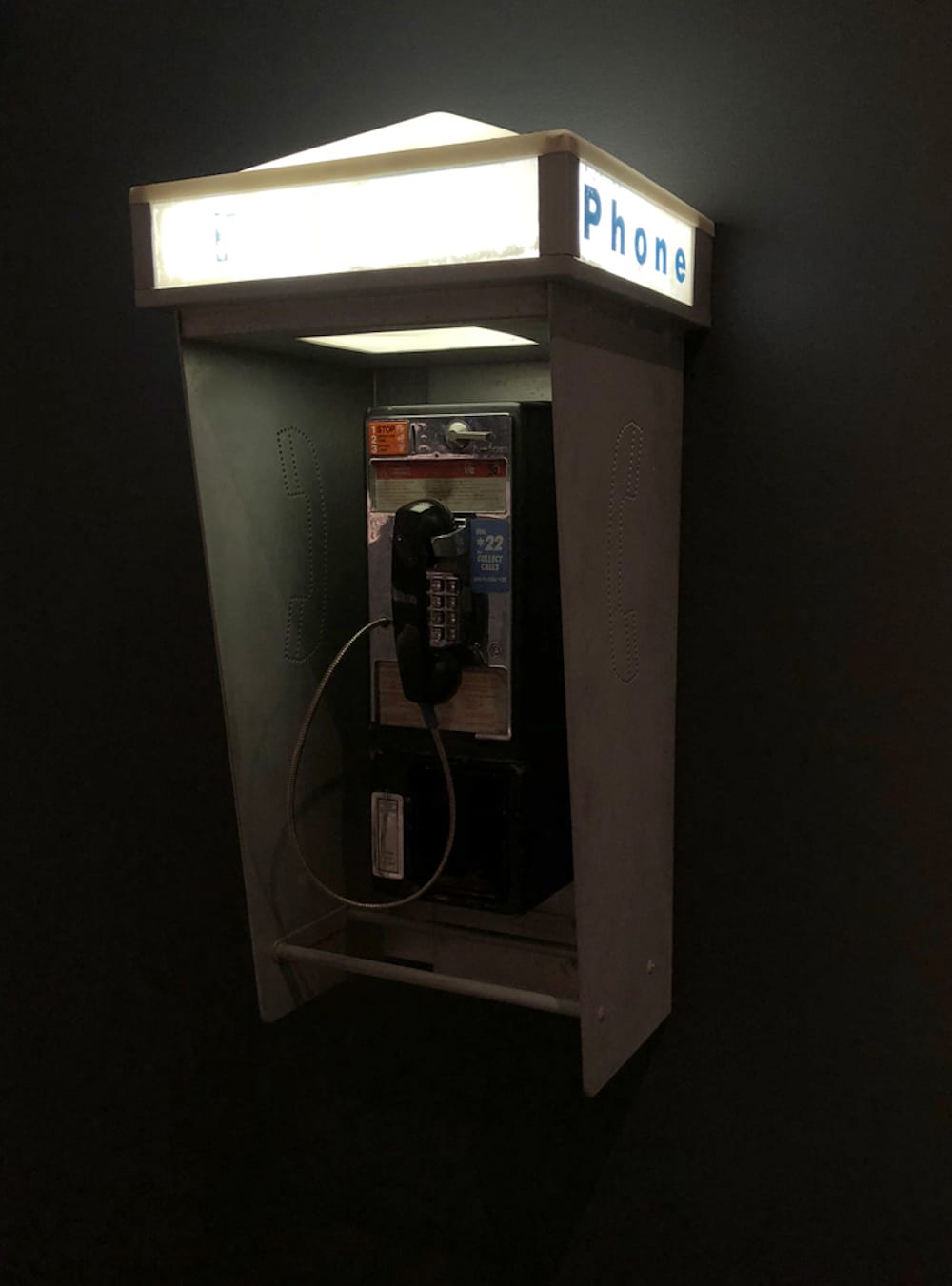 It is likely that Nakadate read Barthes and possibly was influenced by him but that seems too narrow a way to approach her work. Her exploration of discontinuities is not limited to photography. In “City of Stars” (2018), she mounts a payphone on the wall. When I picked up and listened to it, I heard snippets of the “artist’s mother’s voicemail messages recorded during the last five years of her life,” as the gallery statement explains. The bits and pieces were pretty much the same: “I love you” and “Call me back,” words of that sort said in a flat voice.