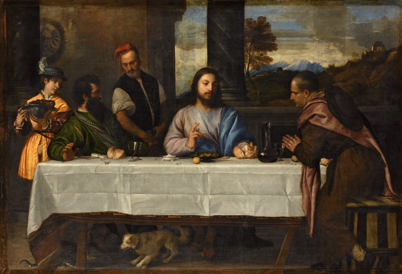 Yet underpinning the show are two crucial pillars of curatorial strength: the diplomatic negotiation of securing the works, and their clear, focused arrangement throughout the gallery in a manner which allows the political events of the time to be told through the narrative of the collection’s history. In securing loans from lending institutions it is often the case that the asking gallery offers one of its own works as exchange; the Royal Academy in this respect is disadvantaged in having little to no permanent collection of its own. Fortunately, much comes from the Queen’s Gallery. Surveyor of the Queen’s Pictures, Desmond Shawe-Taylor, joins the RA’s Per Rumberg as curator. Yet one may speculate with some awe at the negotiations that must have happened to borrow the mighty Titian’s circa 1534 “The Supper at Emmaus” and Anthony Van Dyck’s circa 1636 “Charles I in the Hunting Field” from the Louvre, Paris, or Titian’s 1533 “Charles V with a Dog” from the Prado, Madrid.