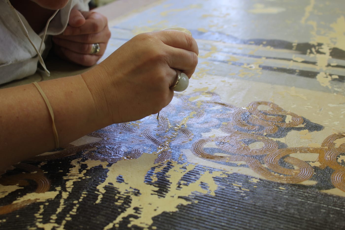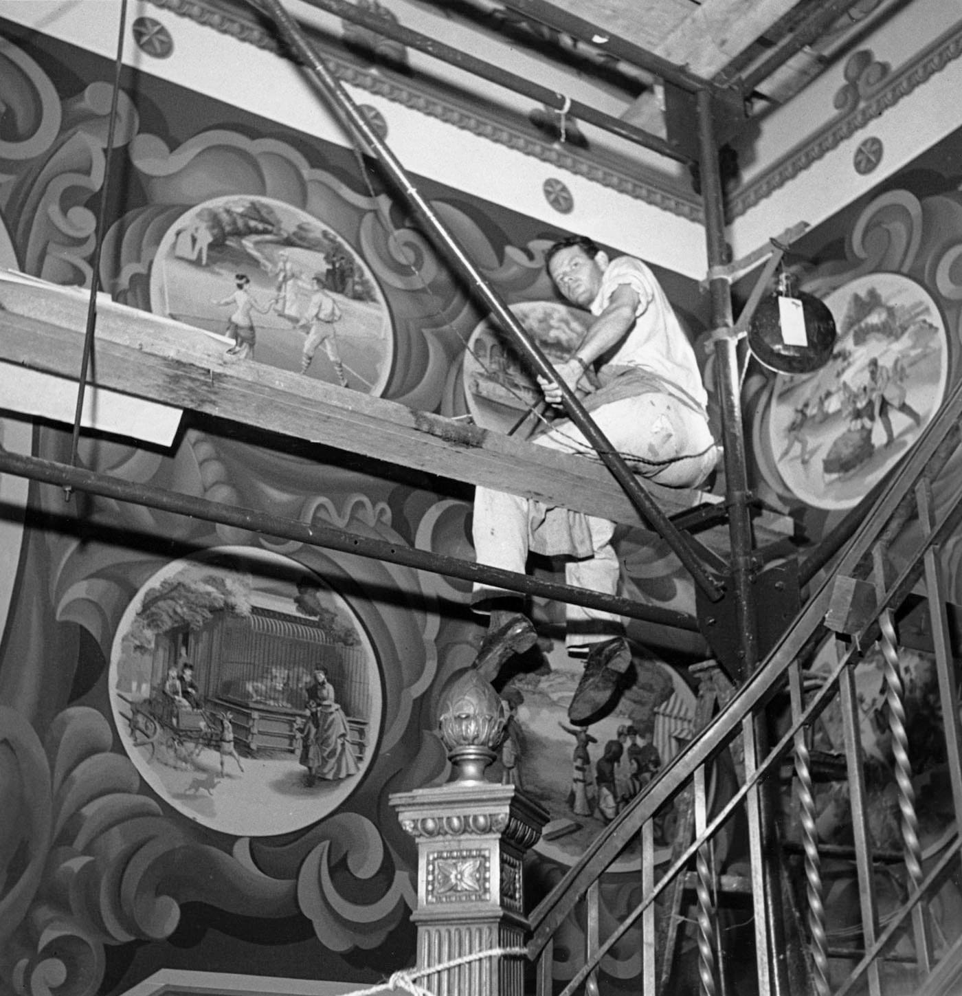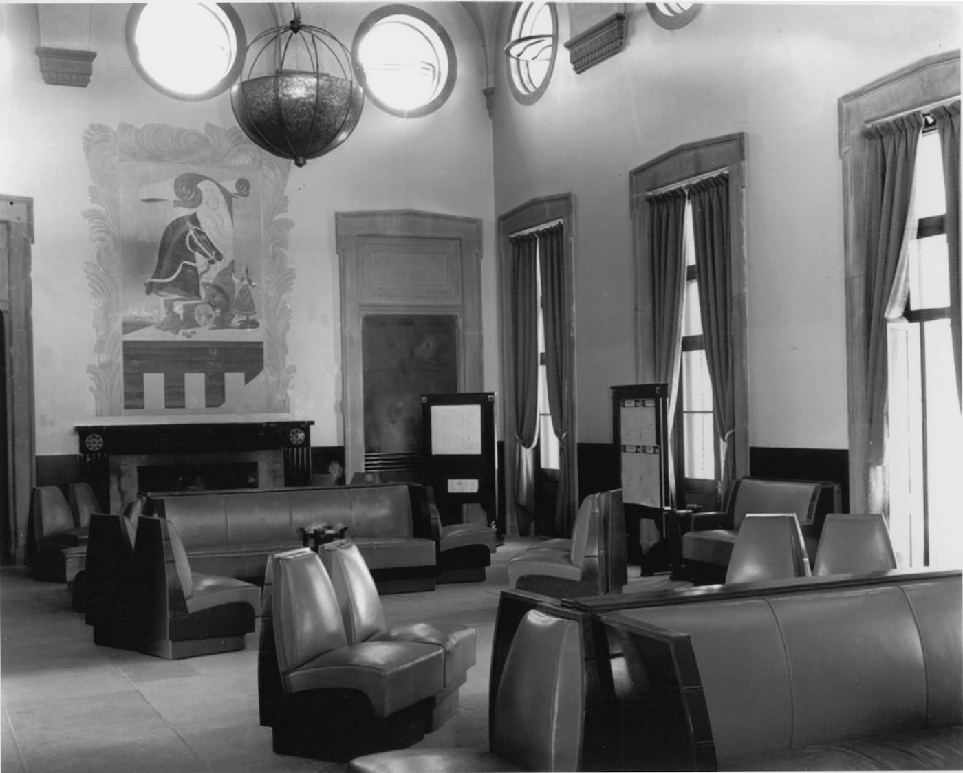 The restoration of the large-scale murals was carried out by West Lake Conservators. Years of wear in the public space, including water damage, cracking, and paint loss, made it a complicated process, especially as the canvases were marouflaged, or glued, right on the walls. Their conservation report describes the extensive cleaning, infill painting for lost texture (large chunks were missing from areas like the horse and steer), and new supports that were added for their reinstallation. As Kuhn stated, “The murals are really special, and they haven’t looked this good since they were put up.”