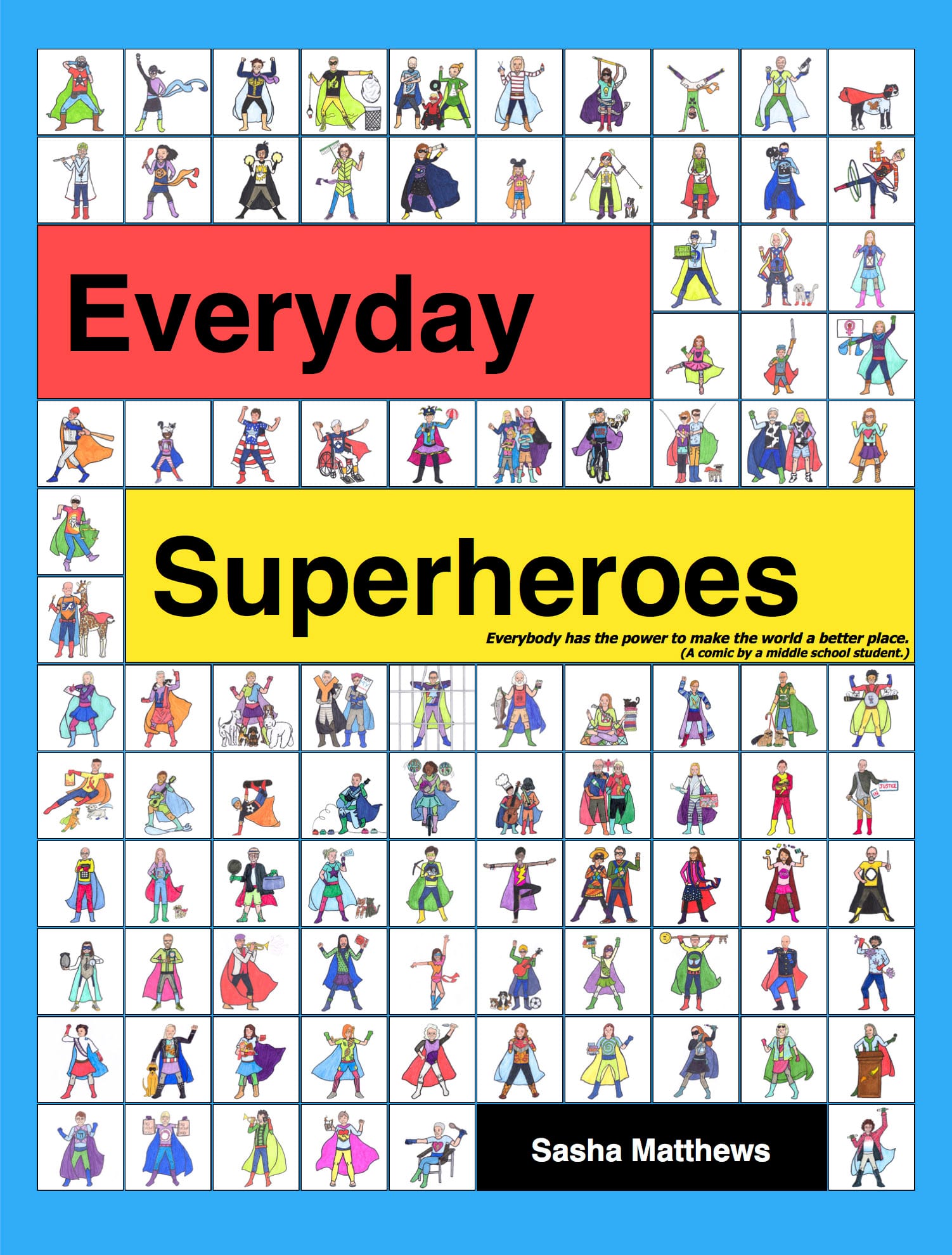 The work Sasha wanted to submit to the Scholastic Art & Writing Awards, Everyday Superheroes, is a collection of almost 100 commissioned drawings of real people as superheroes; their superpowers are the things they do in their everyday lives, like picking up garbage while hiking or working in astrophysics. Sasha used the project to raise more than $11,000 for the American Civil Liberties Union (ACLU) last fall.