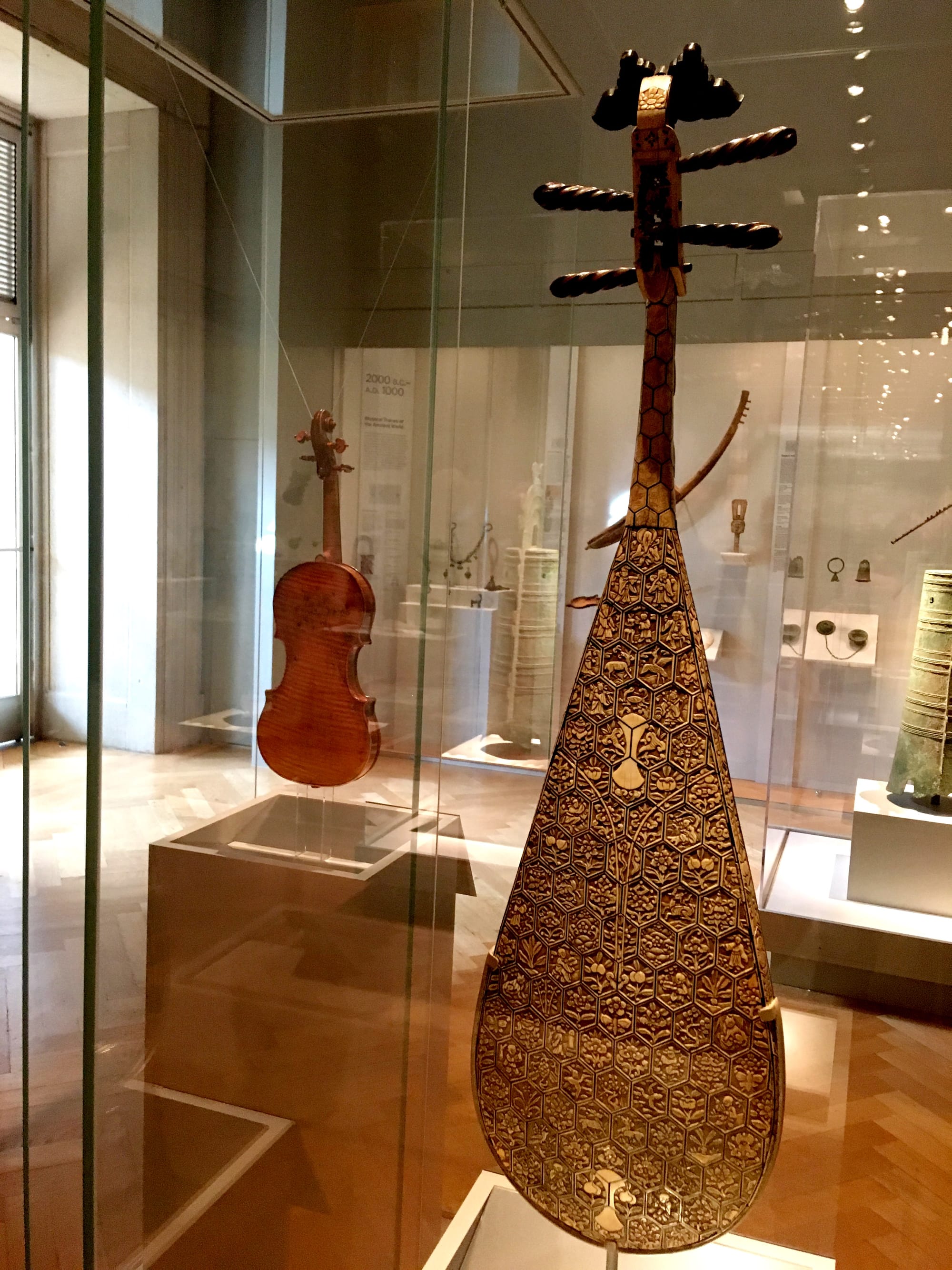 Once inside the main gallery, the historical timeline of music-making begins in Mesopotamia and Ancient Egypt, weaving its way through the rest of Asia and Africa, Latin America, and the golden age of Western classical music, and ending with electric guitars and violins, as well as electric versions of traditional Chinese and Puerto Rican instruments.