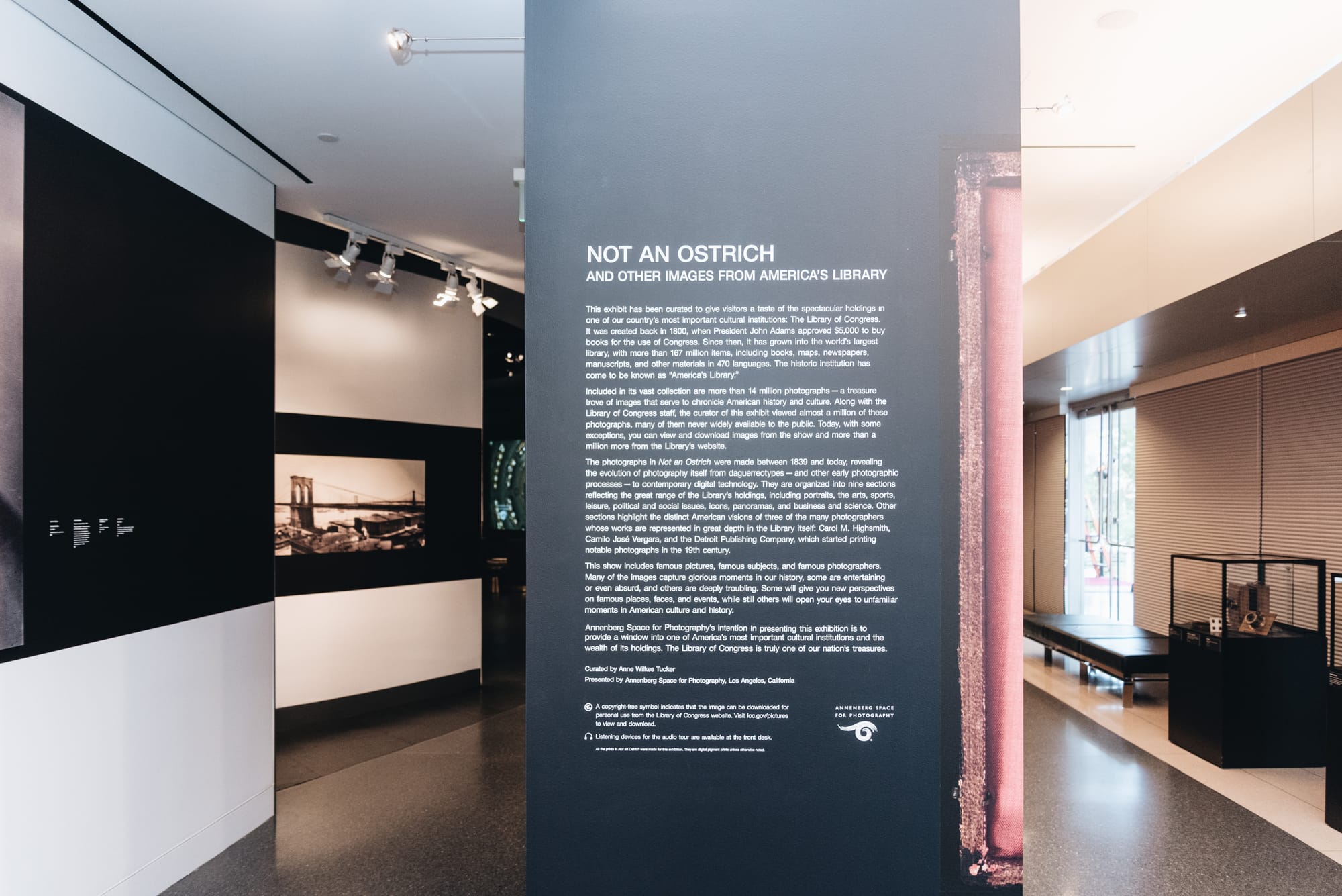The majority of the photographs, unfortunately, have to be viewed digitally, as projected on high-resolution screens; Not An Ostrich features just 50 modern prints. As part of this collaboration between the Annenberg and the Library, all 440 photographs have been digitized for the exhibition and these files are now available as part of the Library’s growing web collections.