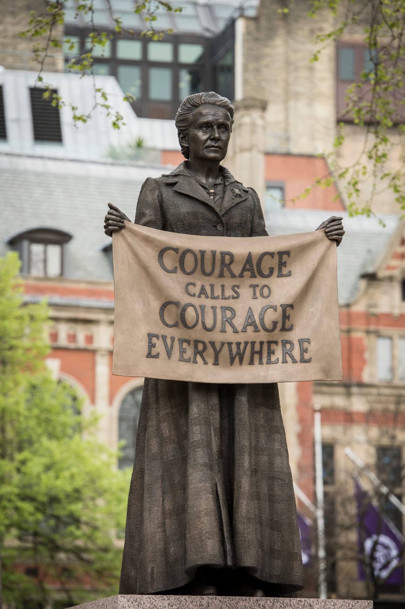 Gillian Wearing’s statue of Suffragist leader Millicent Fawcett was unveiled in London’s Parliament Square. Fawcett is the first woman to be commemorated at the site, where she joins the company of 11 men, including Winston Churchill, Nelson Mandela, and Mahatma Gandhi. Wearing was commissioned to create the statue following a public campaign led by writer and activist Caroline Criado Perez. The phrase included on the statue’s banner — “Courage calls to courage everywhere” — is an excerpt from a speech made by Fawcett reflecting on the death of Emily Wilding-Davidson at the 1913 Epsom Derby.