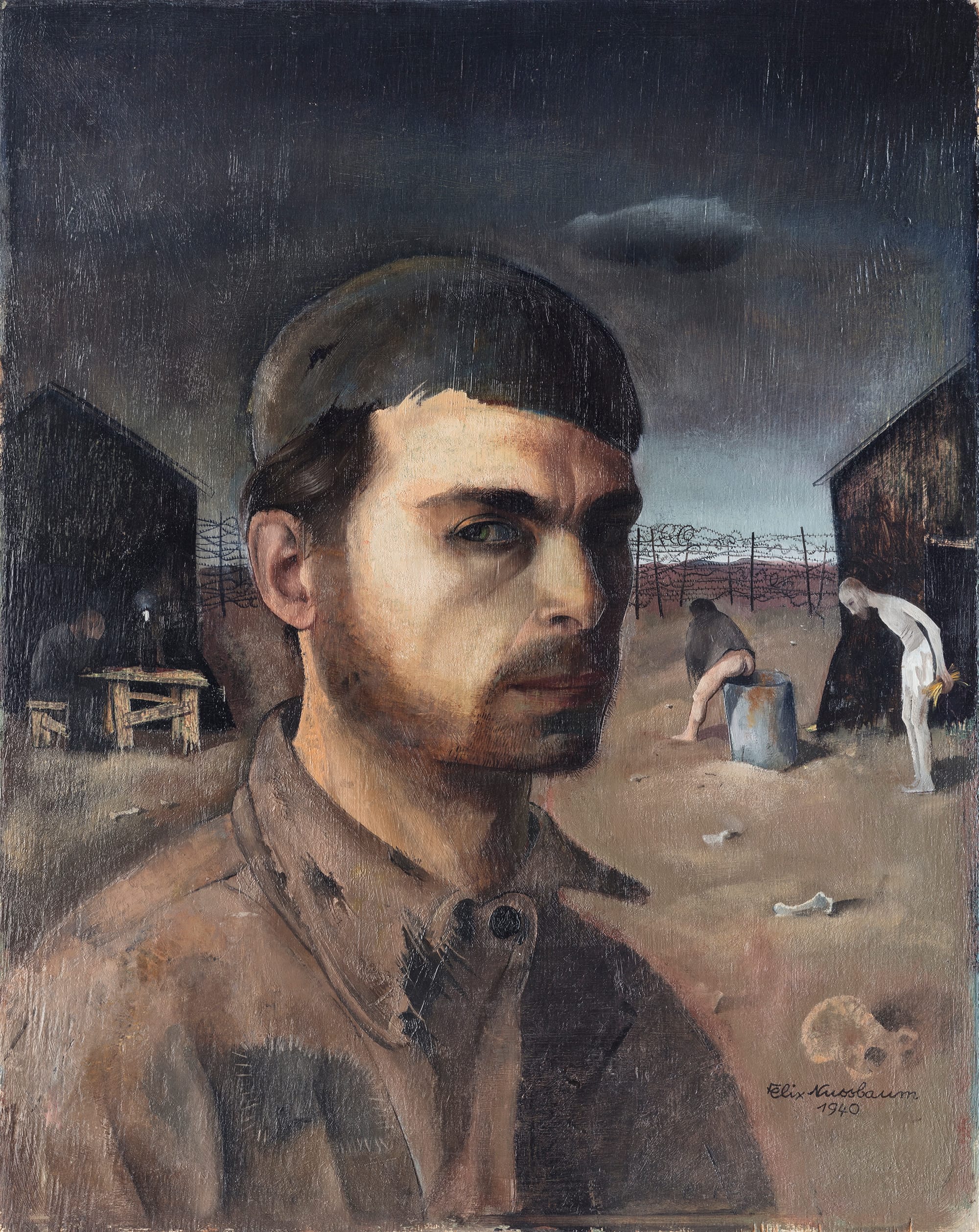 In this instance, the political content is unambiguous: Nussbaum was detained by Nazis in an internment camp in southern France in 1940. He completed this painting while in hiding in Brussels, but in 1944 he was denounced and sent to Auschwitz, where he was murdered. Yet the artist’s three-quarter profile and the visual conflation of prisoners with rural peasantry recalls German Renaissance painting and suspends the work between its sociopolitical context and art historical heritage, expressing an interiority of almost ineffable tension.