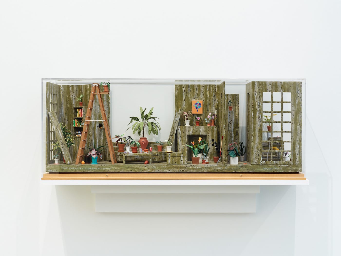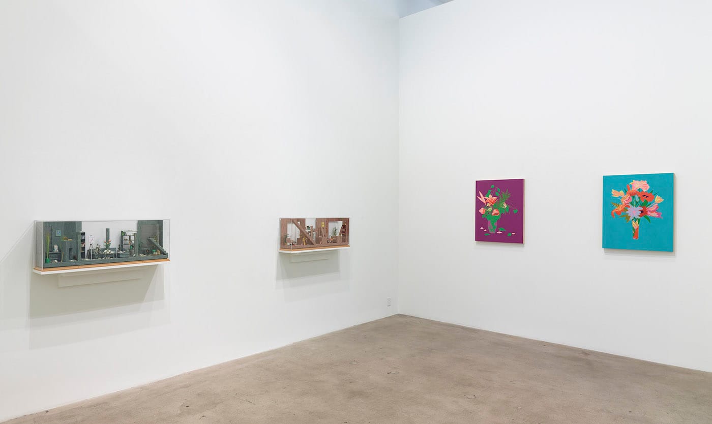 Lita Barrie: You currently have two exhibitions pairing your miniature dioramas with your floral paintings. The two bodies of work have drastically different scales: the dioramas depicting human environments are Lilliputian while your anthropomorphic flowers are human scale. Why?