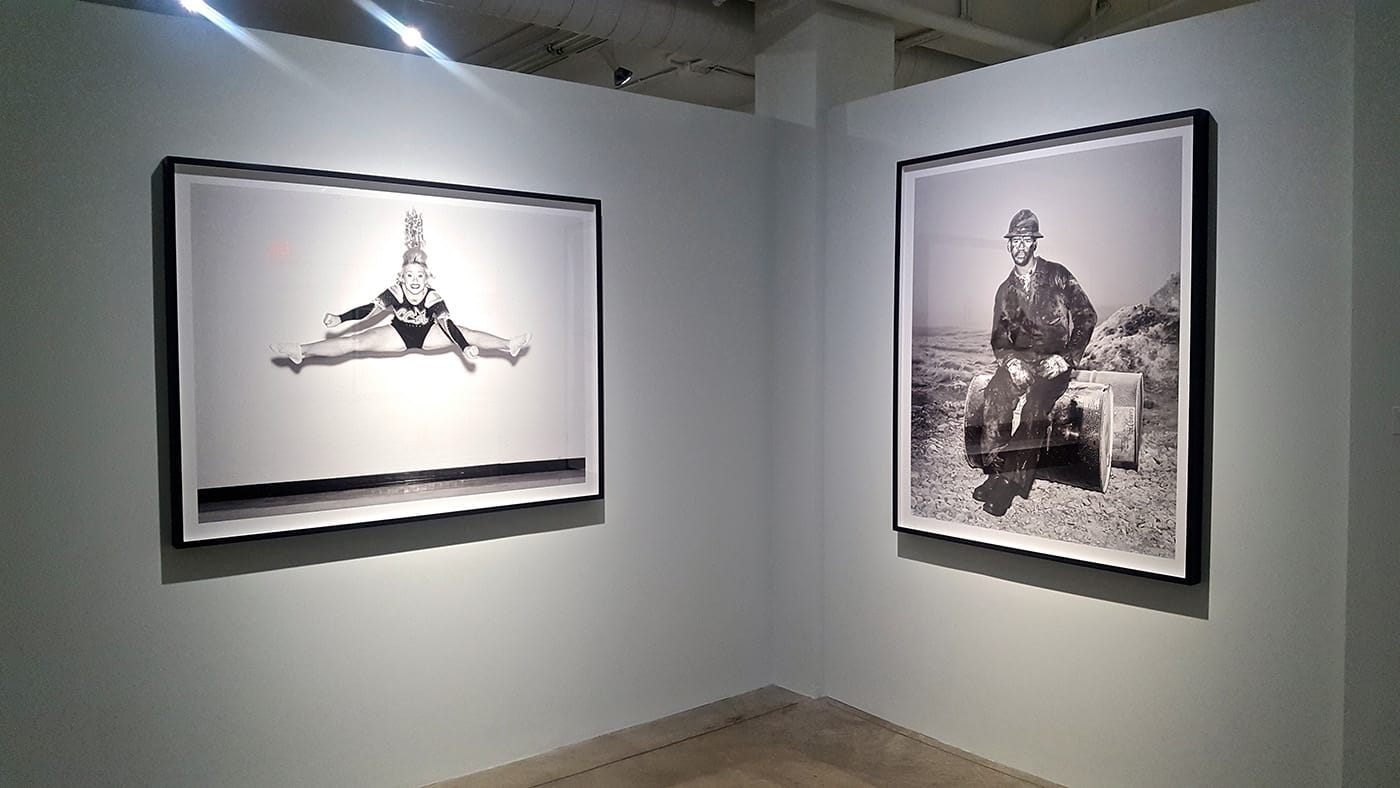 Soth’s work fits comfortably within this lineage, as much of it developed via spontaneous interactions on road trips through lesser-run territories in Middle America. He certainly demonstrates an Avedon-esque virtuosity with black-and-white values; selections from Soth’s Songbook series, shot with a Hasselblad camera with a digital back, are so hyper-detailed that they almost pull details out of life that aren’t normally there. Soth has a powerful ability to capture the critical moment of extremely kinetic subjects — a cheerleader in Corsicana, Texas frozen midair at the apex of a toe-touch, her ponytail rising straight above her head; in Kaaterskill Falls, New York, what appears at first glance to be a scenic view of a waterfall contains a male figure in a dead fall so perilous, it could only be achieved by someone with lifelong familiarity in making the dive; even an ostensibly simple tableau of a hand reaching toward a wall of keys at a shop in Savannah, Georgia captures the reflection of light off the keys, behind the extended finger, so as to give a Sistine Chapel sense of gravitas to the gesture.