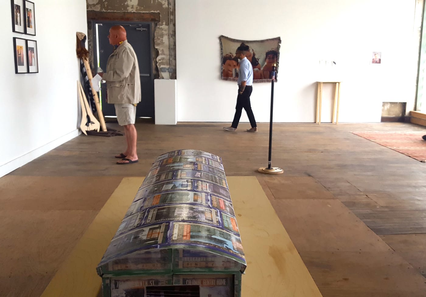“I bought it my sophomore year, and I knew there was something about it that was going to be a part of my thesis,” Gallagher told me. “And I’m thinking about what role I’m playing within that — am I the parent? Am I the father? After spending a lot of time with it, I decided I was going to make all the projects in the book, and that was the show.” But the idea went through several permutations, moving from executing projects, to asking what a book would look like if it were made to reflect Gallagher’s experience as he prepared to leave CCS and embark upon his “adult” art career. What would those projects look like? The resulting collaborative works make up Parent Project, which opened over the weekend at Holding House.