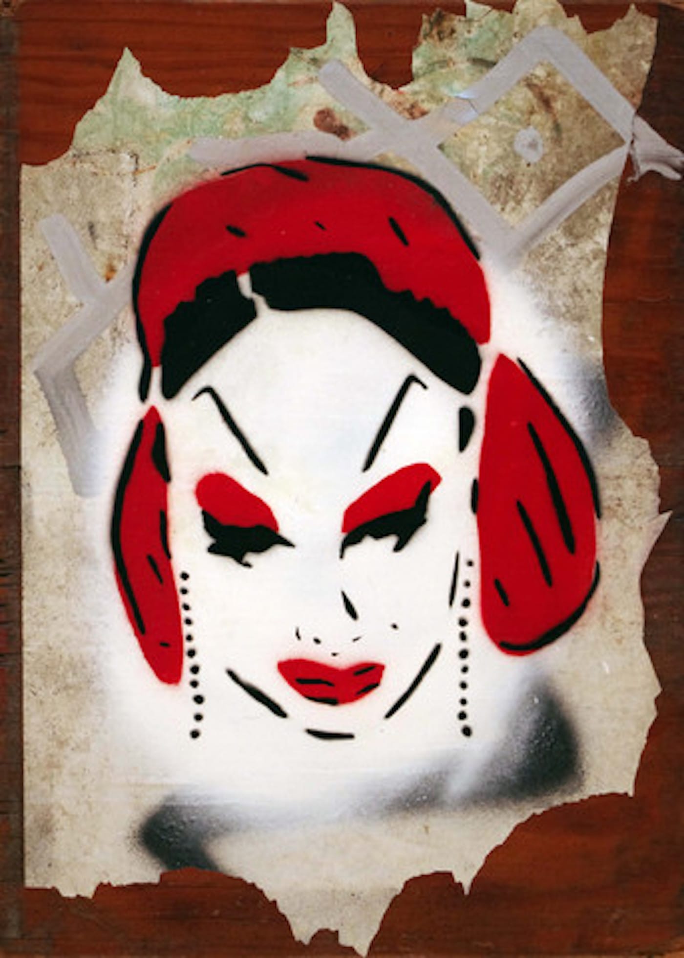 Novy, a Wisconsin native who currently resides in Los Angeles, is widely known for his stenciled images of koi fish, which appear throughout numerous US cities. Yet, as far back as 2008, Novy started placing queer images throughout Milwaukee, Chicago, New Orleans, Atlanta, San Francisco, Los Angeles, and elsewhere in response to the homophobic nature of graffiti culture. His past “queer” works include an array of rainbow-colored Care Bears, a stencil of the international drag icon, Divine, and stenciled and wheat-pasted posters of sexualized, intimate portrayals of men.
