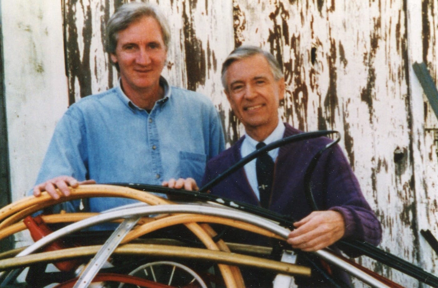 The soft-spoken star of Mister Rogers’ Neighborhood was taping a segment for his program on a farm not far from where we live outside Baltimore. The episode featured the found-object sculptures of Leonard Streckfus, whose artwork is equally appealing to children and adults. Leonard and one of my closest friends, Stuart Abarbanel, both have studios on the property where the film crew was set up. Remembering the important role his guest played in Adam’s childhood, Stuart invited us to observe the taping.