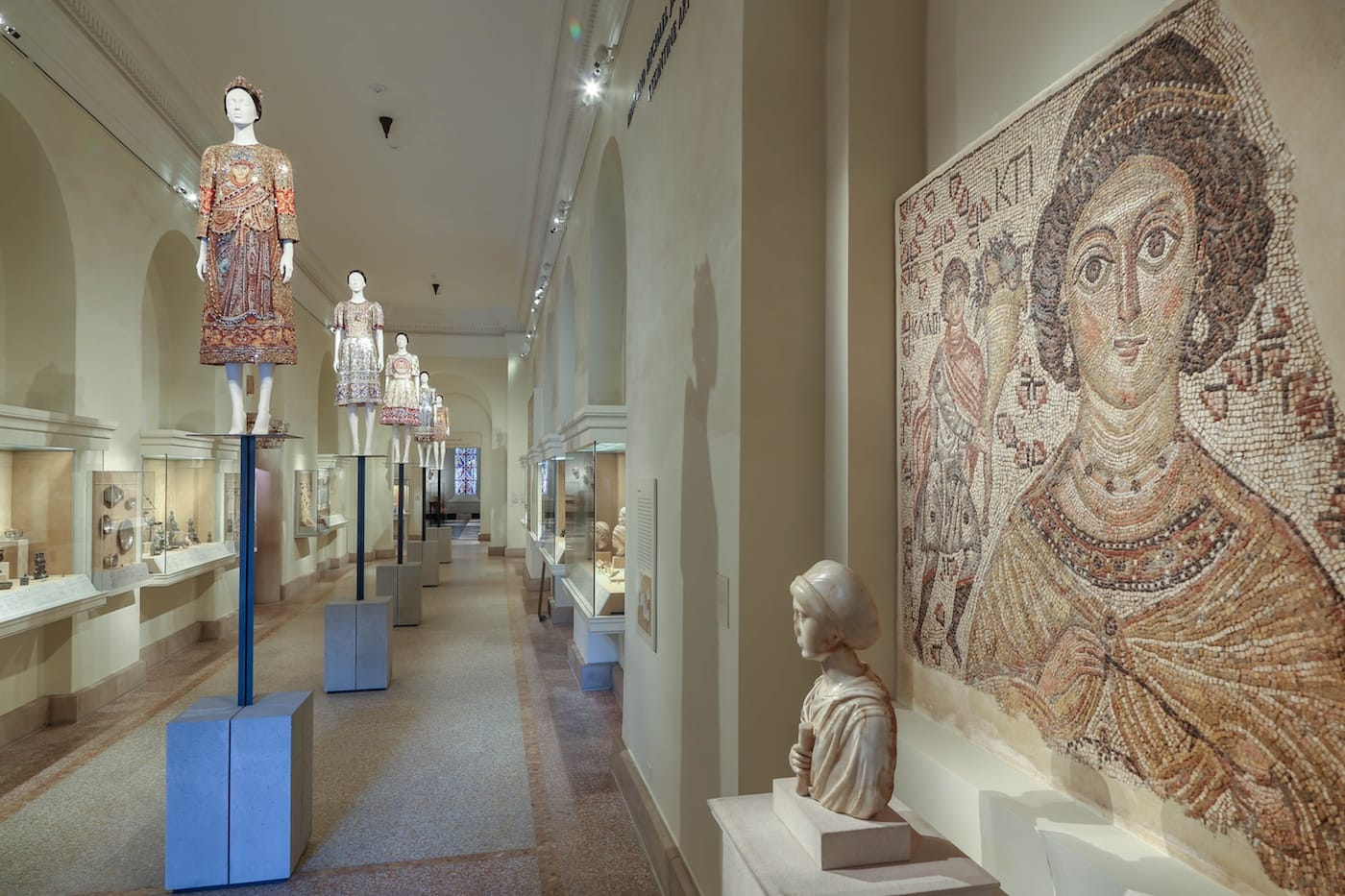 Presenting contemporary garments alongside Byzantine and Medieval artworks underlines the visual differences between the two genres of objects.