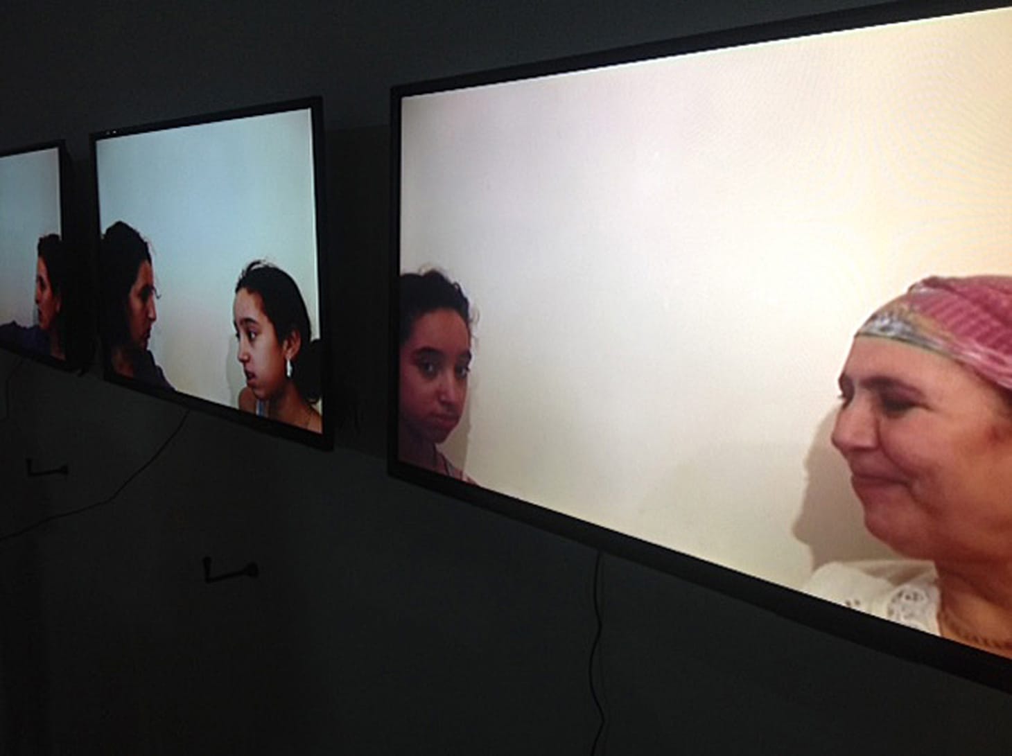 Zineb Sedira, “Mother Tongue” (2002), video triptych (photo by the author for Hyperallergic)