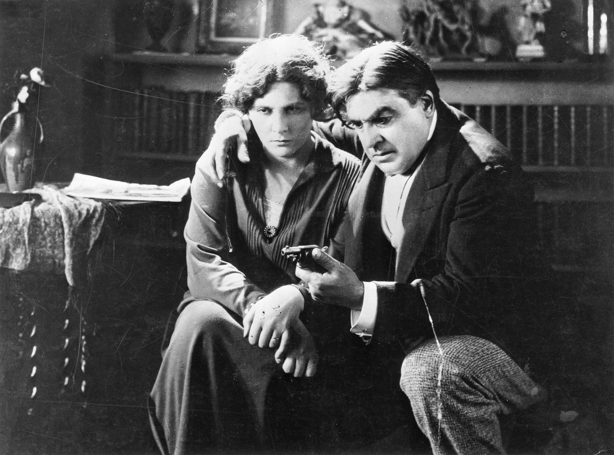 Dulac avails herself of dramatic camera angles, taking a cue from such early 20th century formalist photographers as Rodchenko. The image is also often distorted, at times stretched, other times quivering, pulsing, blurred. The film’s forms and shapes, and the actors’ bodies, are kept in perpetual motion, conveying the priest’s inner torment. In the end, we can never be sure if we are following an action or being plunged inside the priest’s psyche. The dissolves create a fluid landscape — in one striking shot, the priest sees the wife on a boat with the general, and then opens his hands, to reveal in his palms water and a sinking ship.
