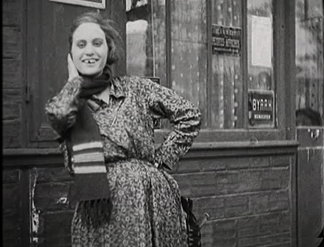 A proto music video, Celles qui s’en font (1930) (which in Dulac’s day was called an “illustrated record”), shows her embracing sound as the film industry was dramatically shifting. We might say that, after the much more brazen themes in films such as The Smiling Madame Beudet, the imagery in Celles qui s’en font is fairly mawkish. In the former, Dulac showed a young housewife pining for an intellectually exciting life, while imprisoned in a lackluster marriage. In the latter, dictated by the lyrics of the two popular songs, All Alone and Drifting, made famous by French singer, Fréhel (born Marguerite Boulc’h) and shot at least partly in the working-class suburb of Paris, Aubervilliers, featuring the same actress, Lilian Constantini, the filmmaker depicts a young gamine driven to suicide by the abuse and fickleness of her boyfriend. Nevertheless, there is an edge to the woman’s clearly impoverished surroundings and dress, her sickly figure not yet glamorized, as such a figure will later become in the age of Calvin Klein commercials and fashion trends like “heroin chic” (Williams wrote in the Dulac biography on Constantini’s naturalist acting style and the film’s semi-documentary aesthetic).