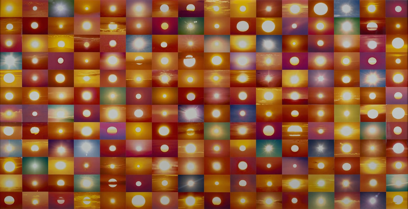 The creation of an image by a photographer leads to debates about ownership of place and ideas. To question the memorialization of an object possessed by no one, artist Penelope Umbrico downloaded a selection of photographs from Flickr tagged “sunset” in her artwork “18,297,350 Suns from Sunsets from Flickr (Partial) 04/16/14” (2014). Like blurry spotlights in a sea of tangerine and vermillion, the star, documented by amateur hands, makes the eye impatient and erratic. Perhaps one photographs the sun seeking to mark a special day, calling the sun to bear witness, but the repeated photographic act renders the spectacular as banal. If we are all pocket photographers, where will the medium and its creators find space for innovation? Umbrico’s approach is an exciting preview of the frontiers.