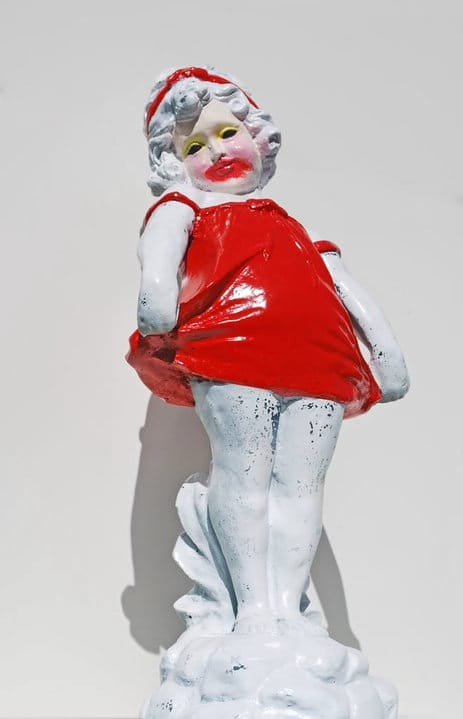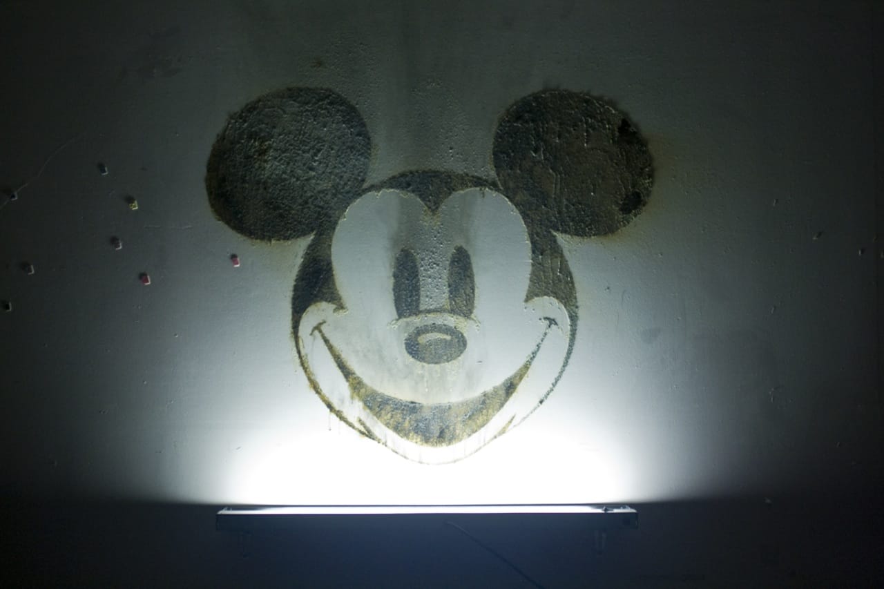 Although his work is perverse and dark there is also humor. A bottle of gunpowder rests on a counter. The last thing he exploded, he tells me, was a Mickey Mouse face on a wall of a Family Christian School for his latest exhibition Black Sunday. The work was an ode to the disastrous opening day of Disney World back in 1955. He points to an oversized pink Barbie house and explains that’s the next thing to go, and frankly it does looks like it deserves to be blown up.