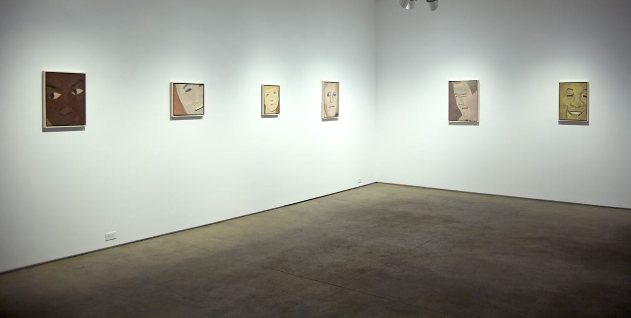 Exhibited less often are his paintings of faces, presented up close and tightly cropped: an approach that sounds intimate, but in fact results in hauntingly anonymous images, thanks to the same abbreviated modeling and delicately unnatural colors.