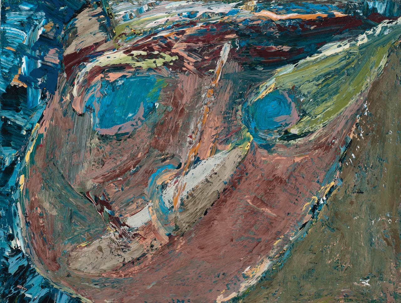 The exception among these late paintings is a 2004 self-portrait, with its dark eyes and reassuringly pink features. Multiple lines crease its rather world-weary countenance, while bare shoulders heighten an impression of vulnerable resolve. One senses an artist confronting himself, and finding the mysteries of a box or bottle, multiplied a hundred times over.