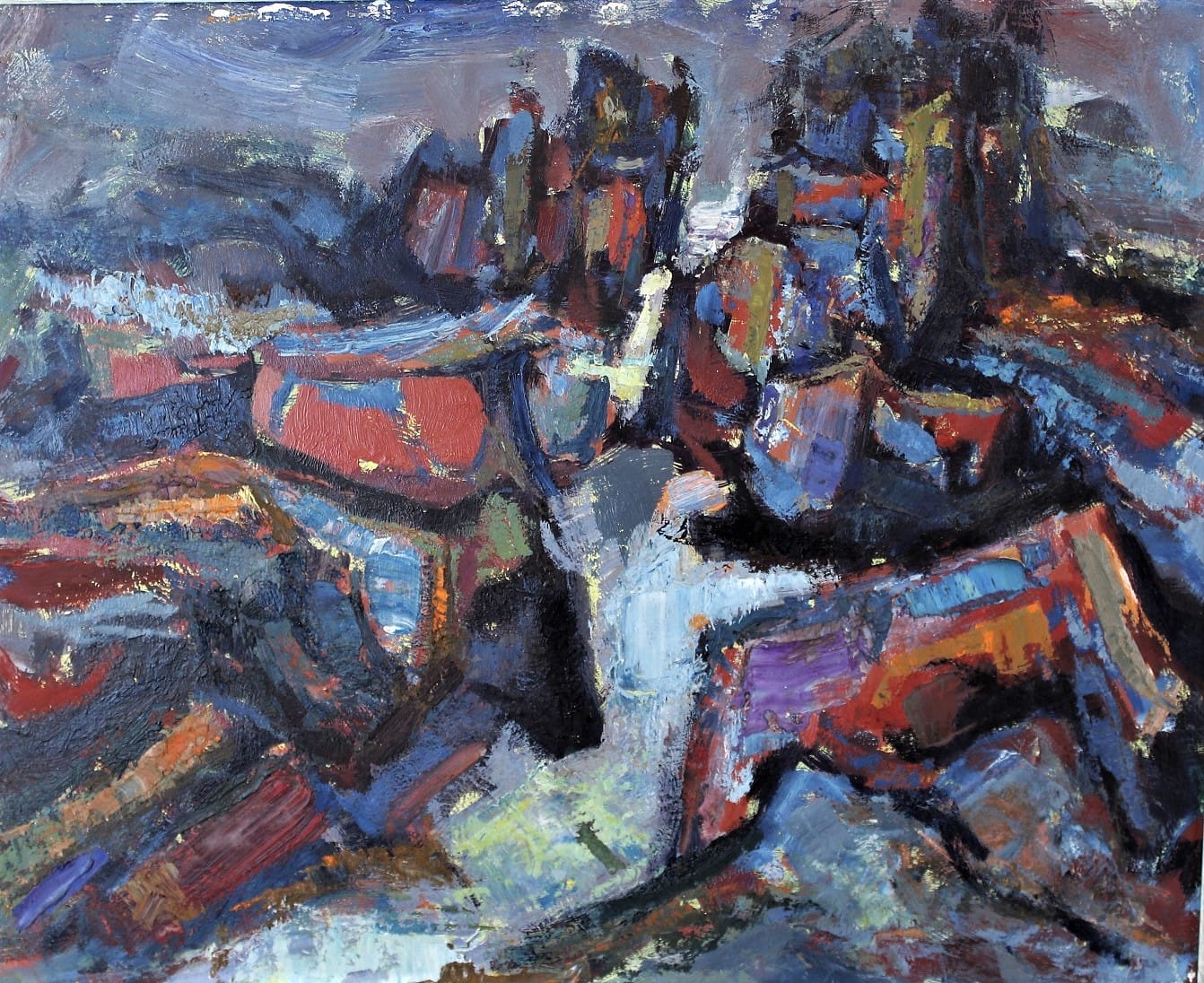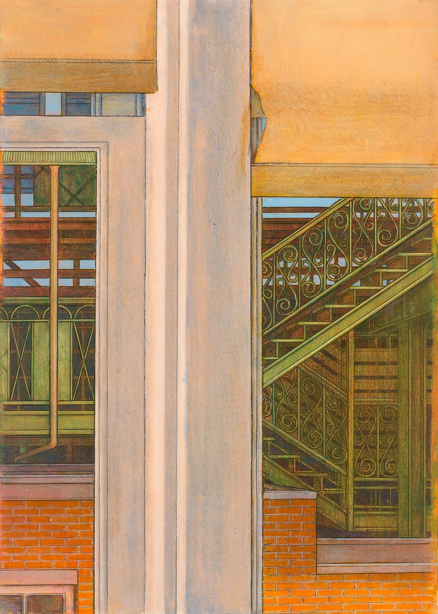 The images that follow these seem, at first, both disparate and unconnected to the theme of self-examination that the show so boldly announces. We find palette paintings of boxers lounging in poses that indicate great power held in reserve; impressionistic images of Maine’s rough coastal landscape; thick impasto paintings of iconic Jewish figures and themes; and precisely rendered images of Chicago architecture. Due to their framing and careful arrangement of angular details and rectangular planes the latter paintings appear nearly abstract when viewed in a certain way. Nonetheless, they remain thoroughly local in their frame of reference. As the journalist Richard Cahan writes in the introduction to Leopold Segedin: A Habit of Art (published to coincide with the Rare Nest retrospective) “Chicago is in Leo Segedin’s blood. The city’s common brick. Its streetlights. The el. Even its unique color palette.” Segedin himself has said, “my sense of space was established by looking out el windows.” (In this, Chicago has a distinct advantage over subway-bound New York.)