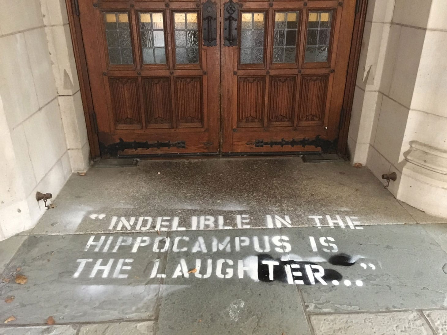 An anonymous artist spray-painted the unmissable homage to Dr. Christine Blasey Ford overnight in the entryway of Sterling Law, the law school’s main building. Yale Law student Laurel Raymond posted the image to her Twitter.